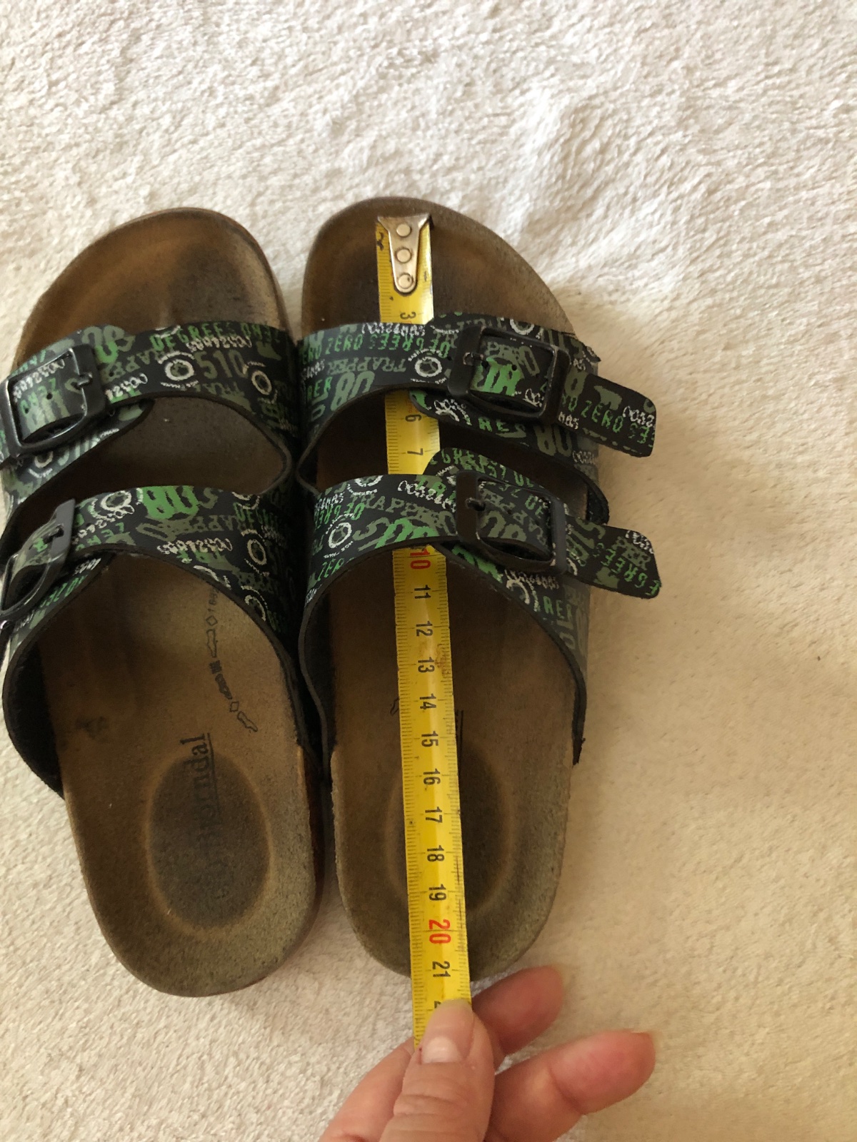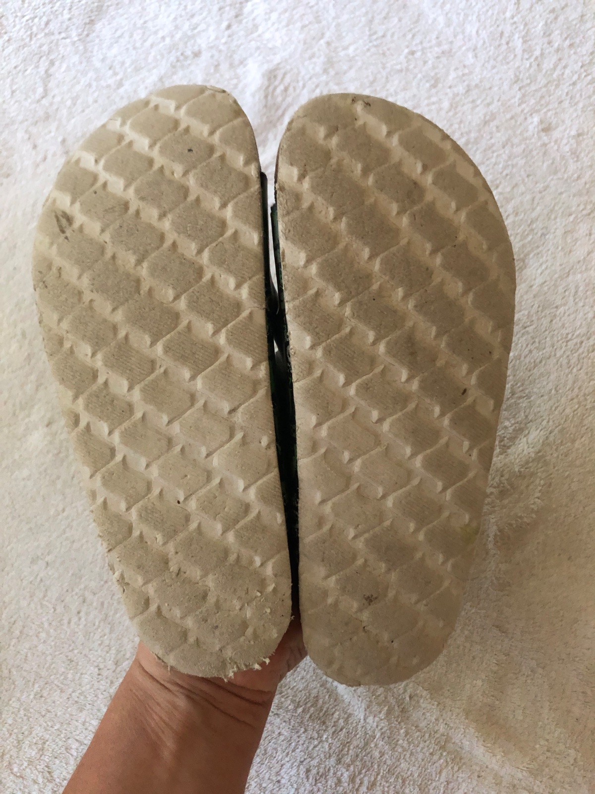 Slapky zn. Bjorndal, velkost 33, nosene ako prezuvky, stale pouzitelne. Dlzka na foto. Pracky neroztahane, paty nezoslapane, stielka drzi, podrazka trocha osuchana. Urcite este niekomu posluzia ci ako domaca obuv alebo ako prezuvky na par mesiacov.