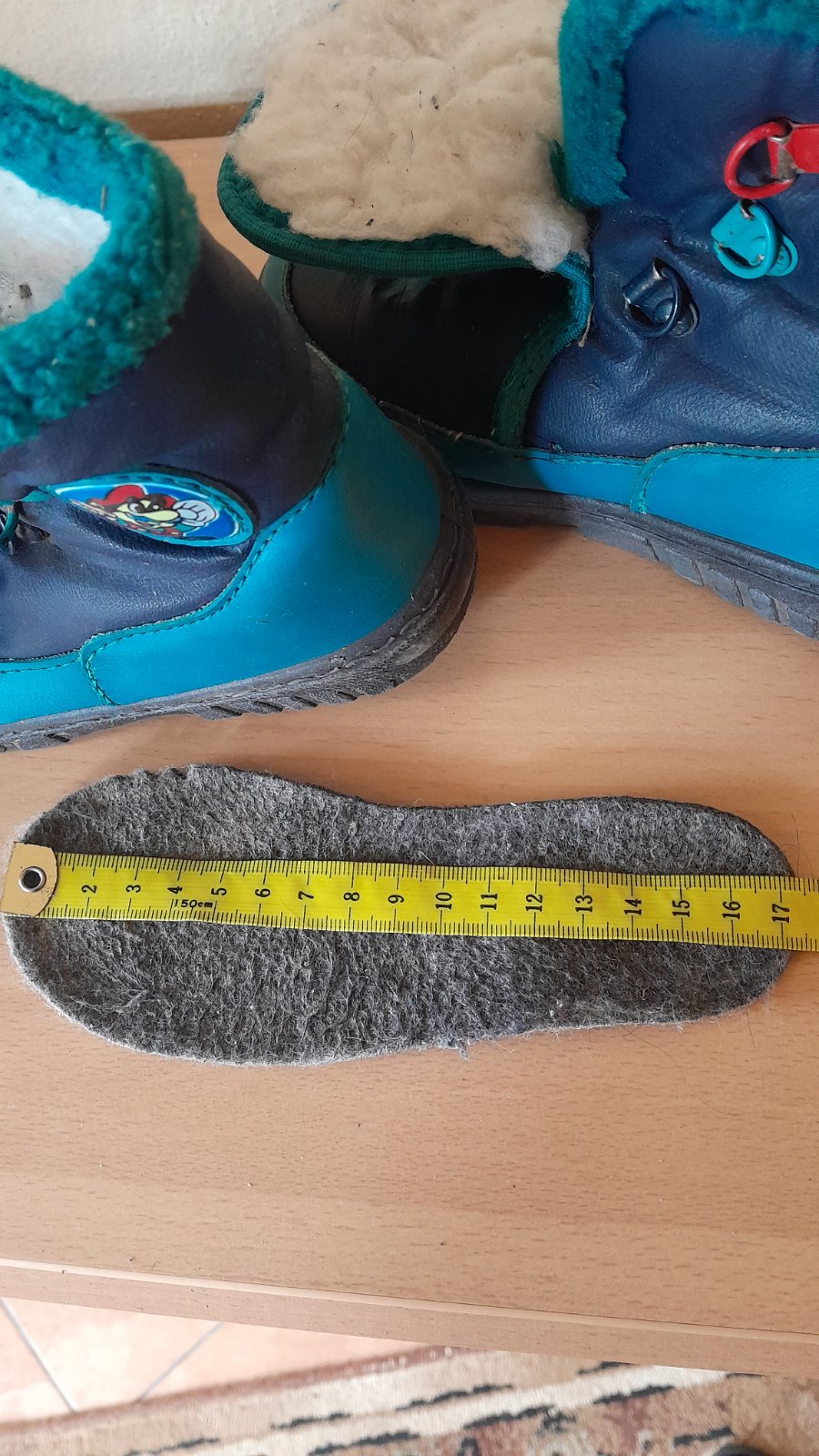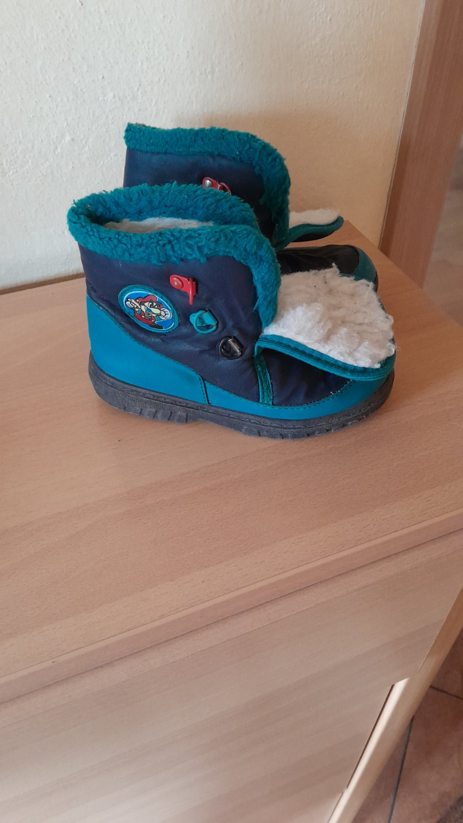 Teple cizmicky di snehu, nie do slaptanice. Cele zateplene kozusinkou, dlzka stielky 18.2cm. Mali sme ich len jednu sezonu, boli velmi oblubene, bez poskodeni.
