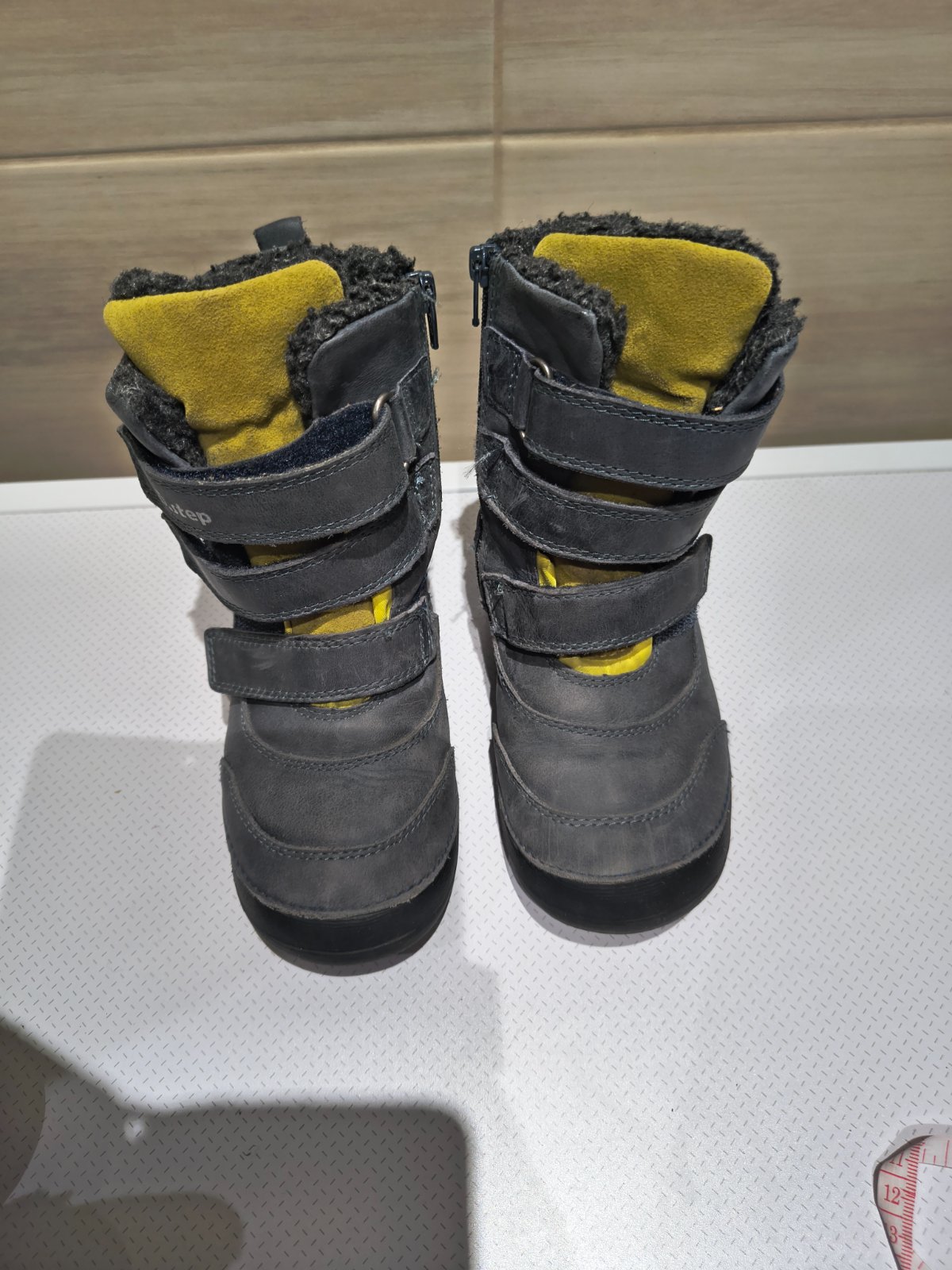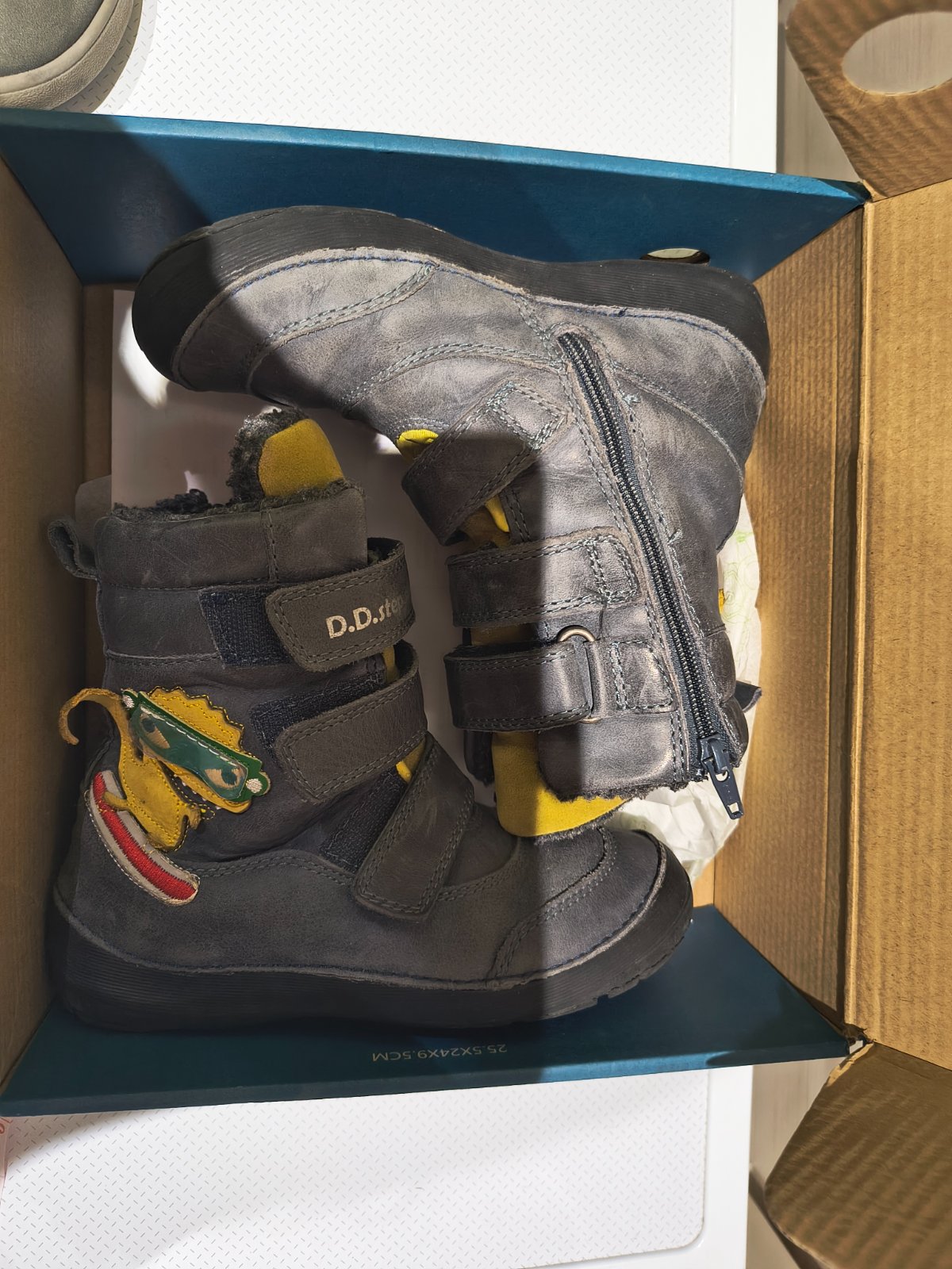 Predám nosené topánky Ddstep po jednom dieťati, zateplené, vhodné do suchej zimy a chladnej jesene. Bežné známky nosenia. Sú celokožené, je to akoby brúsená koža. Zelená podrážka vyzerá ako keby bo...