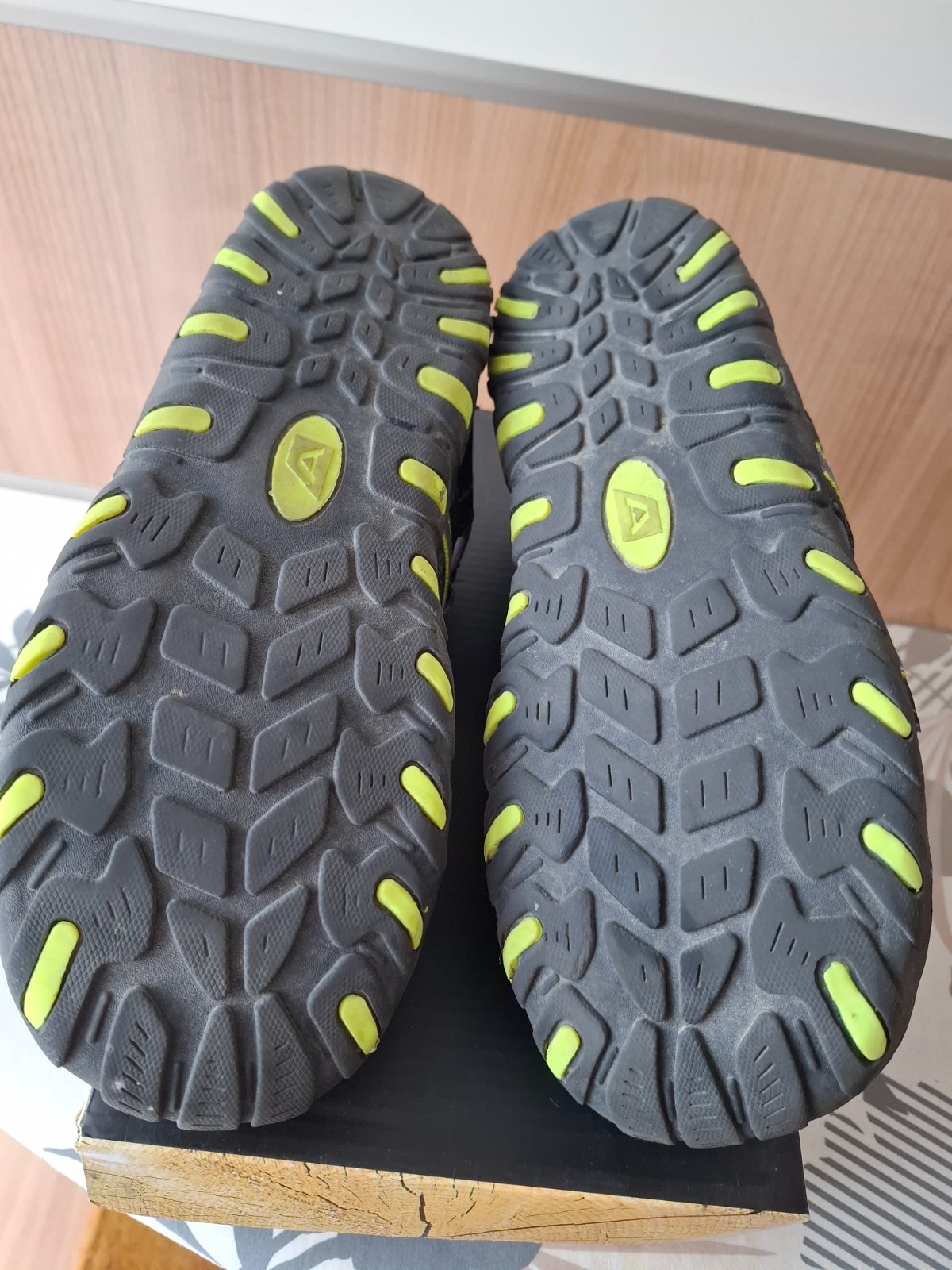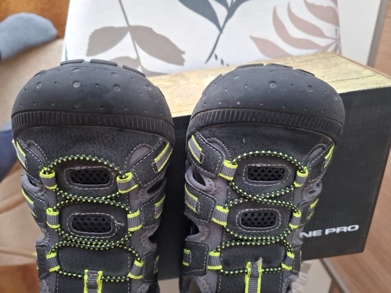 Používané jednu sezónu, sú kožené. Vyčistené, sú v super stave. Jedine chybičky sú: Trochu zosuchany názov a kúsok vzadu pod patou( pri nosení nevidno), okopnutá ďobka vpredu, na zadnom remienku...