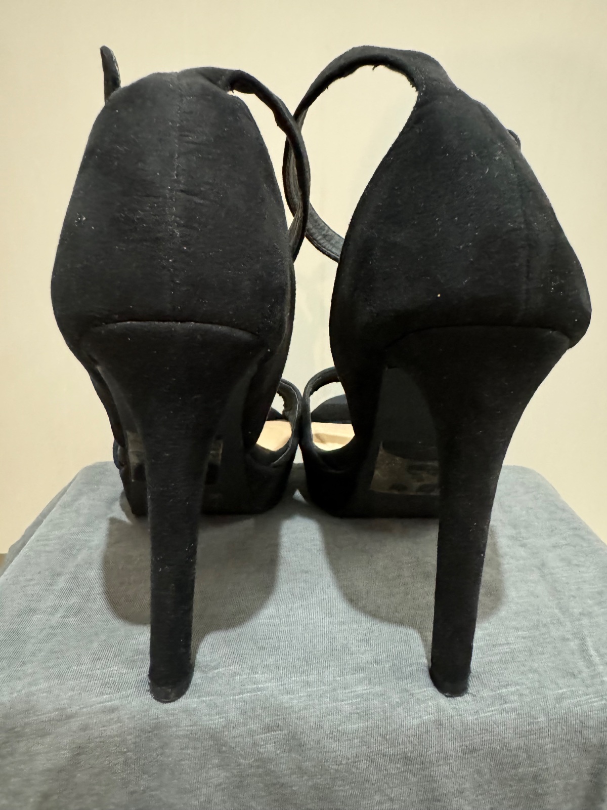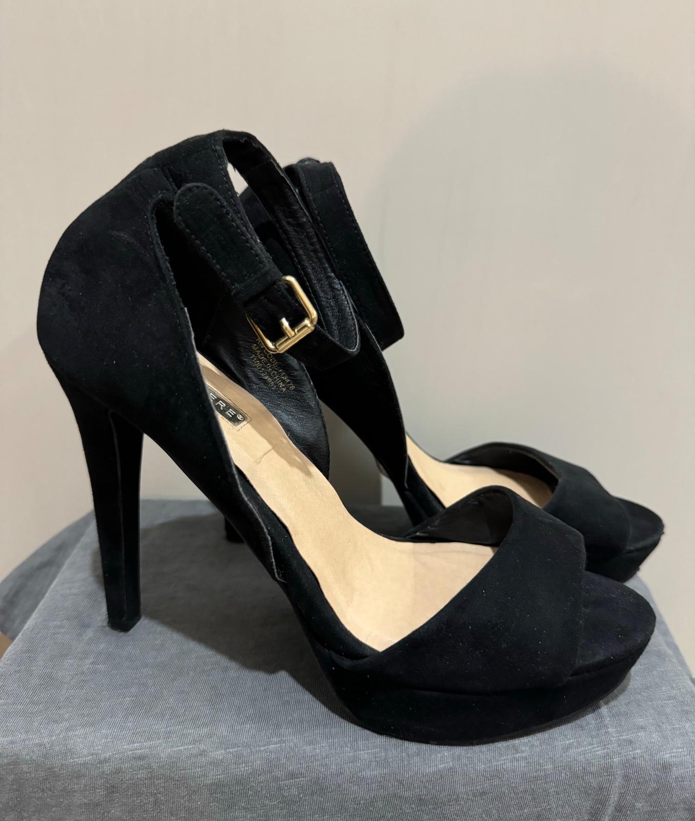 Akoby semišové. Výška podpätku 12,3cm, výška prednej platformy 2,3 cm. Zachovalé, zvnútra mäkké.