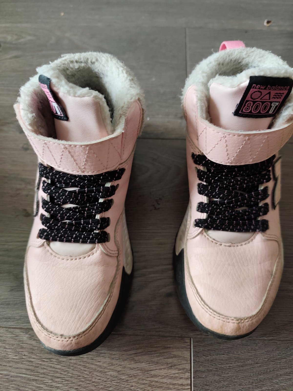 Brusena koza, vnútri s kožušinovou, jedna čižma ma jemnejší odtieň ružovej, minimálne nosene