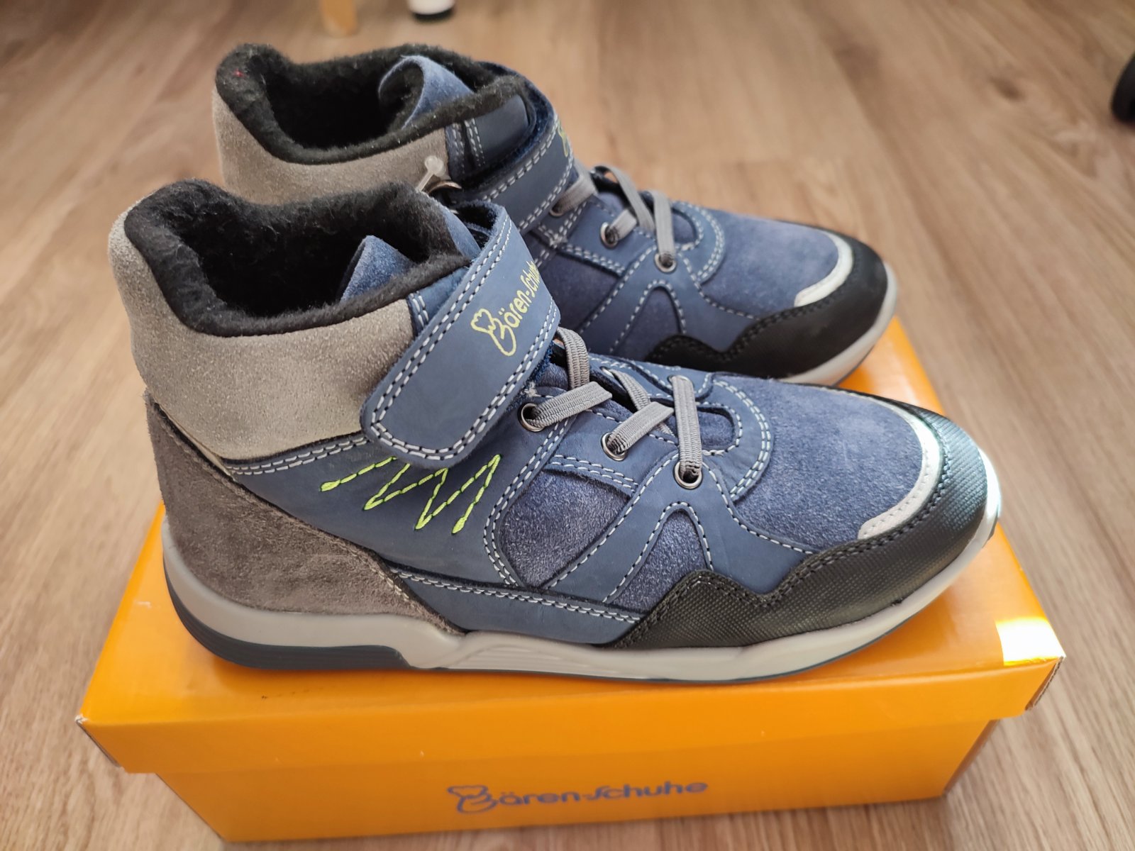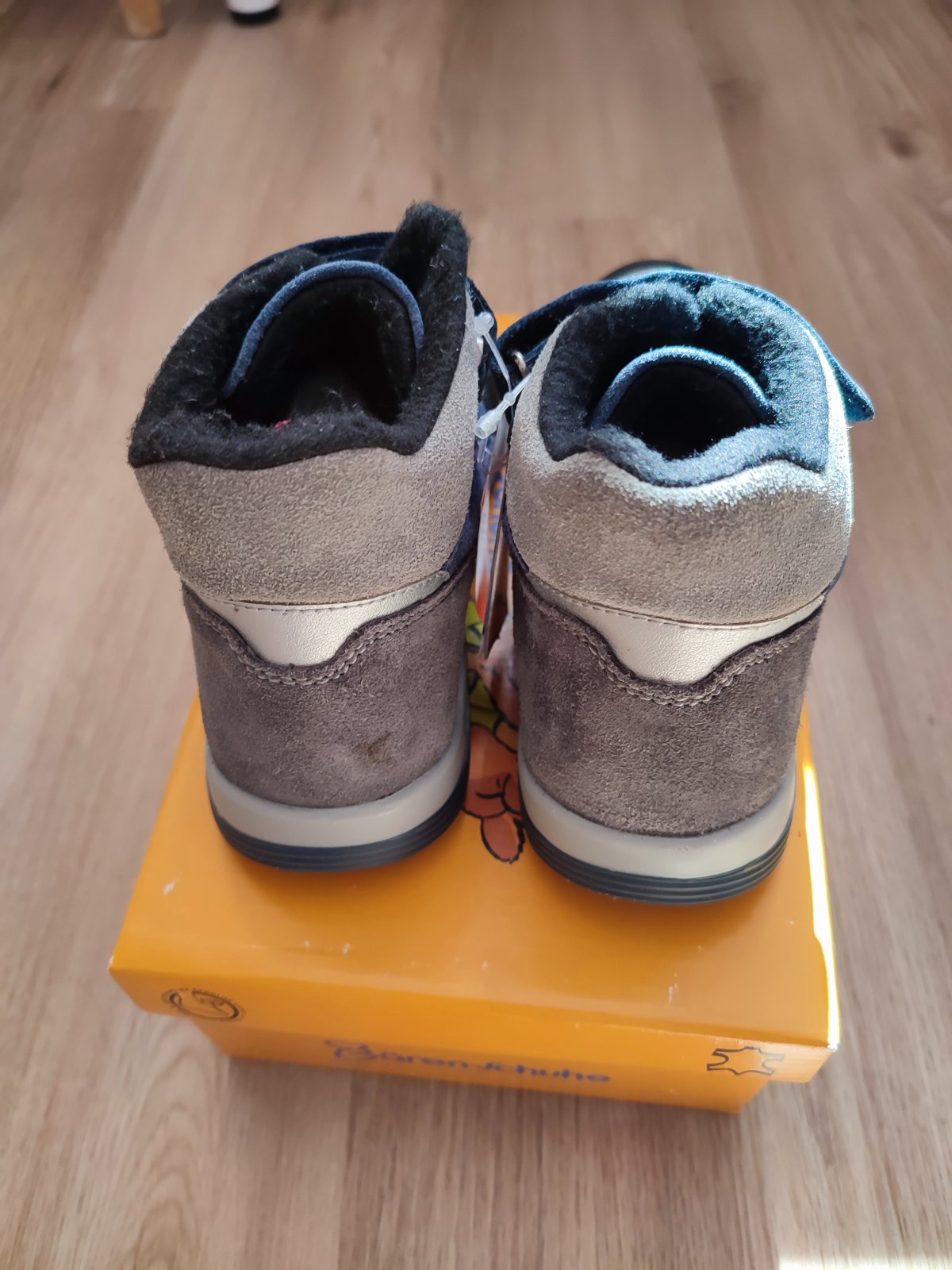 Nove s visackou v Original krabici, prava brusena koza, na prechodne obdobie, ale su zateplene takze aj na miernejsiu zimu, velkost pisana 31, ale sedia na beznu 33, pretoze vnutorna dlzka 21,5cm (vnutri namerana), kupovane v Deichmane, znacka BärenSchuhe