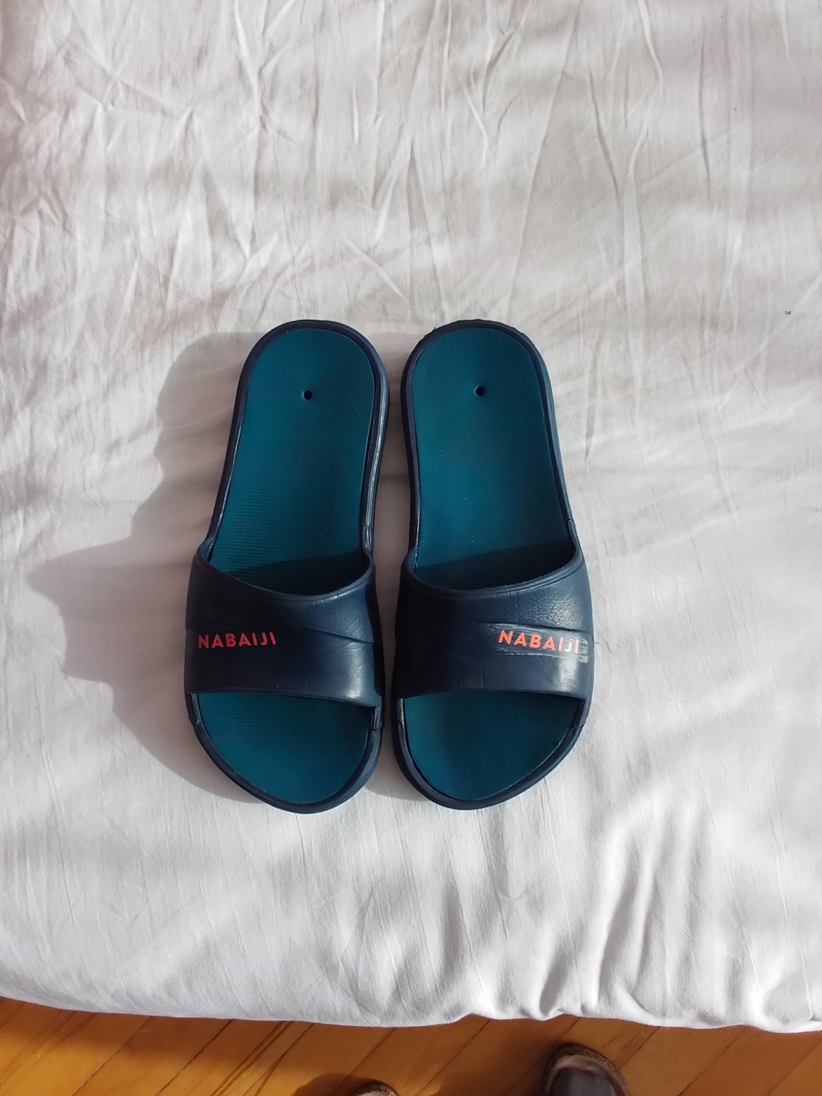 Nosené na striedačku majú minimálne známky nosenia max na putku škrabančeky jak sa mu šuchali nohy inak sú pekné nevychodené nosené málo vhodné na leto k vode