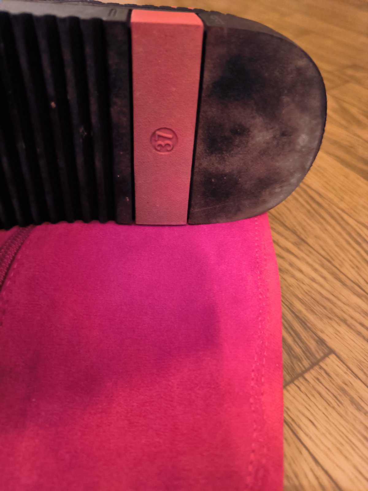 Velmi sexy,no pre mňa až moc🤗,vel. 37,semiš komb. s koženkou,super sedia,nosené,no vidieť len na opatkach