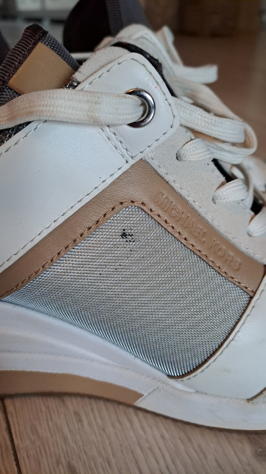 Tenisky Michael Kors veľ.38 , na jednej je čierny fľak, ktorý sa mi nepodarilo odstrániť. Bez iných poškodení.