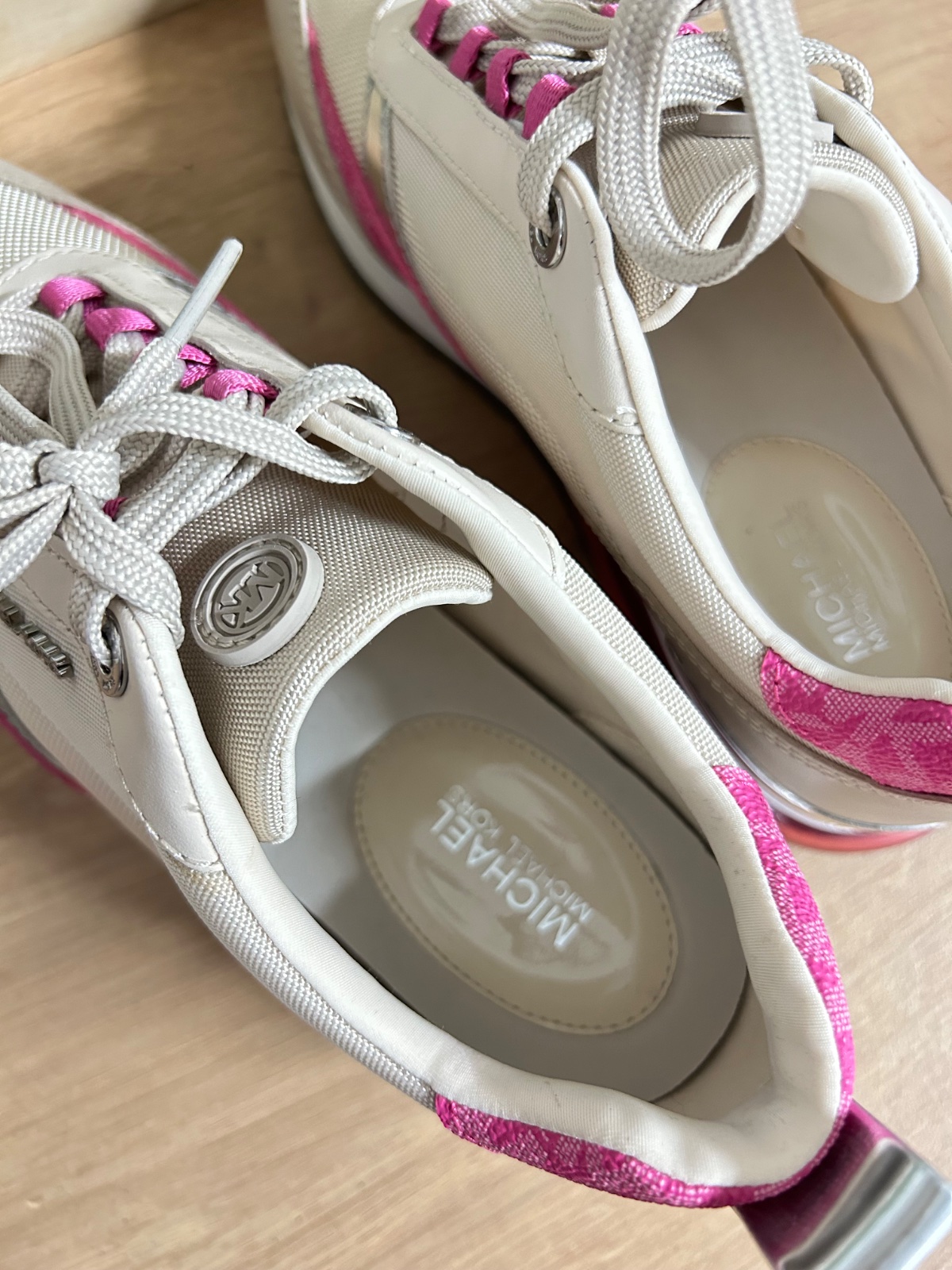 Predam tieto nádherné sneakesy značky Michael Kors, originál kupované v Rakúsku, obuté iba 3x. Bledo ružová potlač loga, veľkosť 7m, 38. Cena 61€