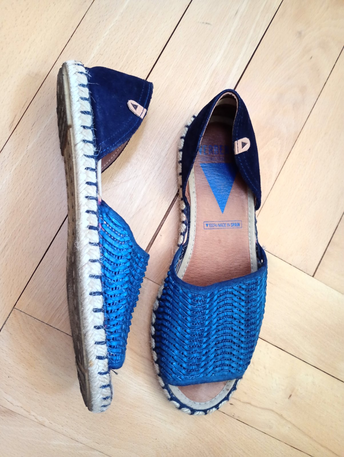 Tmavomodré sandalove espadrillky s koženou stielkou