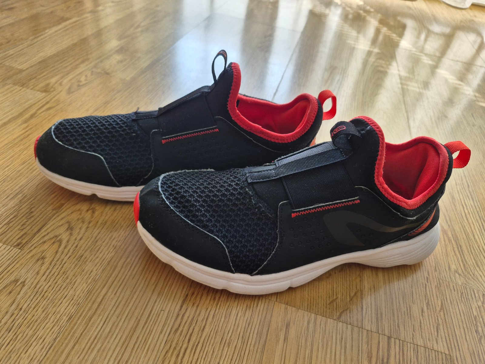Veľmi pekný nosený stav, vypraté, vložka nová (vn. dĺžka 24 cm), nepoužívaná. Sú perfektné, na šport kupujeme iba tieto v Decathlone: https://www.decathlon.sk/p/171793-135717-detska-obuv-run-support-easy-nazuvacia.html