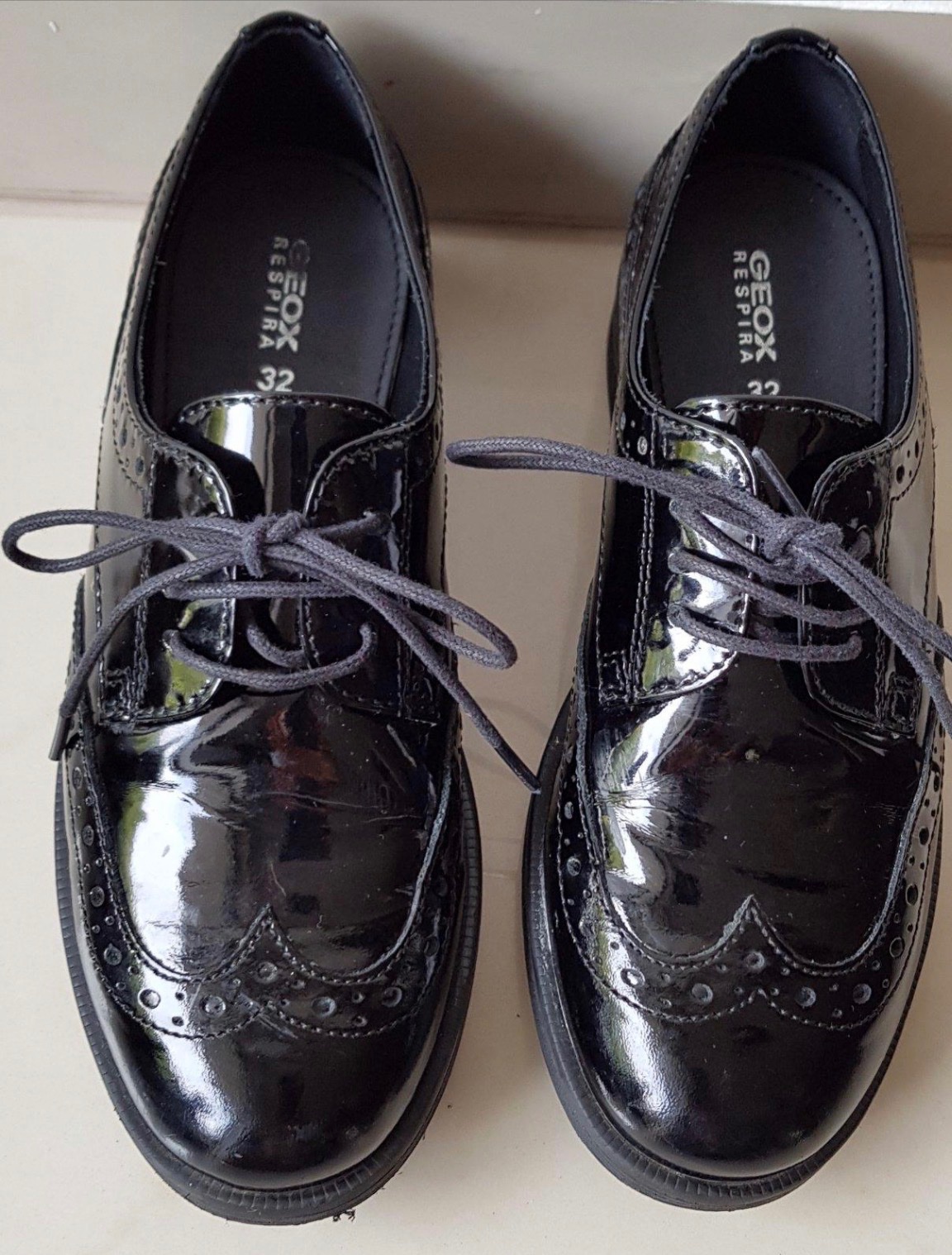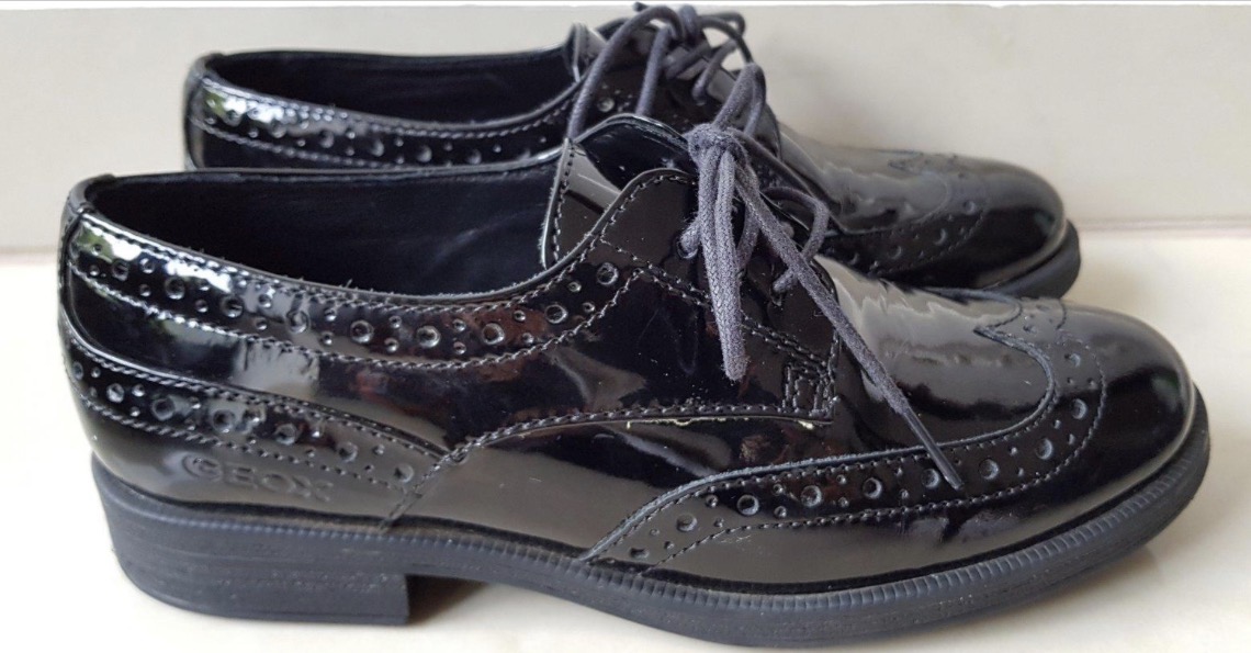 Predám krásne spoločenské chlapčenské lakované poltopánky zn. Geox, veľkosť 32. Sú v úplne super stave, boli 1x obuté na svadbu. Jeden maličký oškrenec na ľavej špičke. Voľným okom neviditeľný.