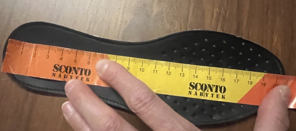 Vnútorná dĺžka je 20,6 cm od kraju po kraj vložky. Použiteľná je z môjho pohľadu tak 19,5 až 20 cm - je to odfotené.