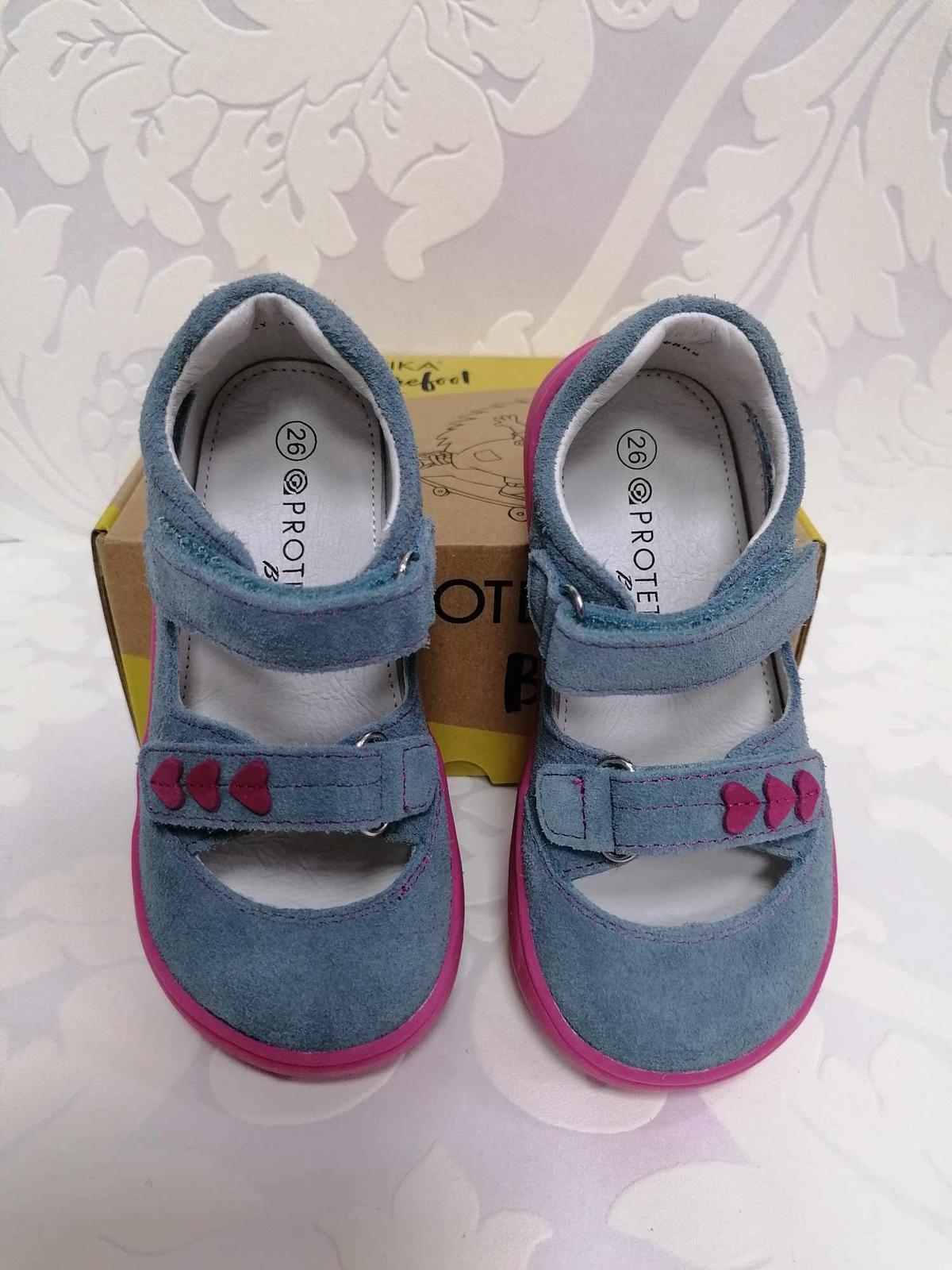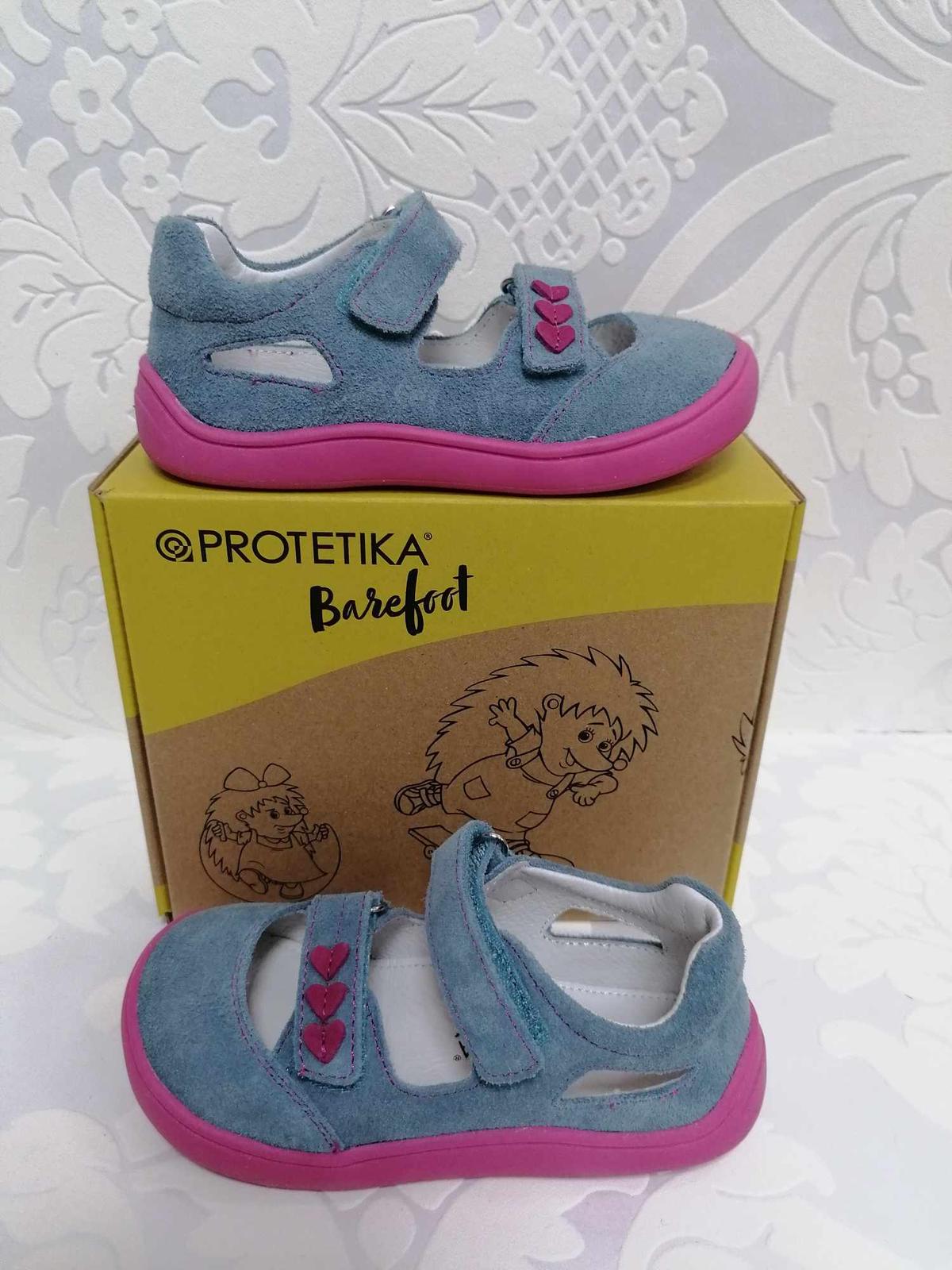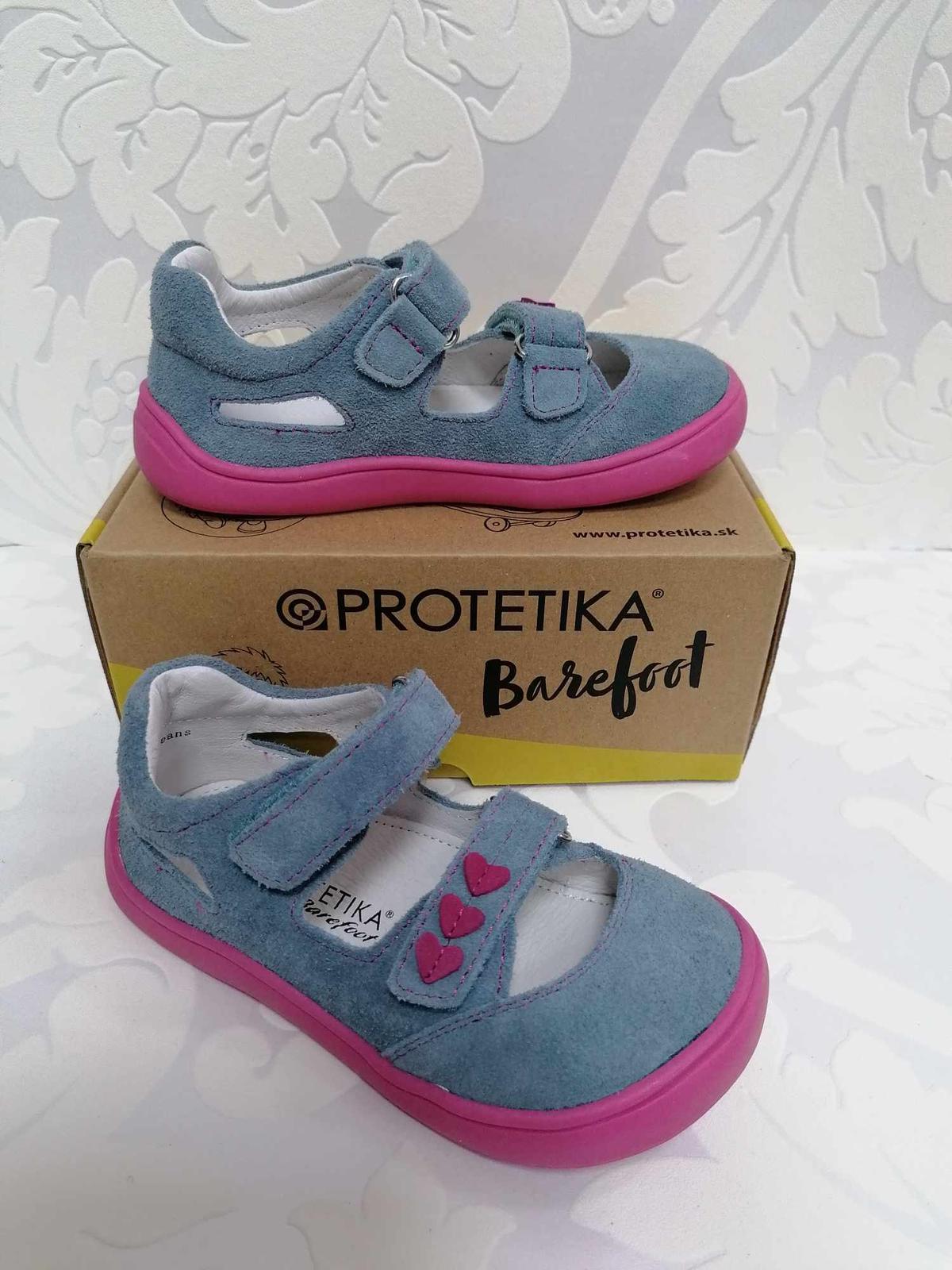 Dievčenské kožené sandále Protetika. Zapínanie na dva suché zipsy, tvarovaná stielka, ktorá napomáha správnemu vývoju chodidla dieťaťa. Vyrobené z atestovaných prírodných materiálov.