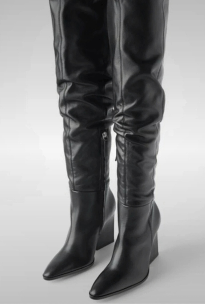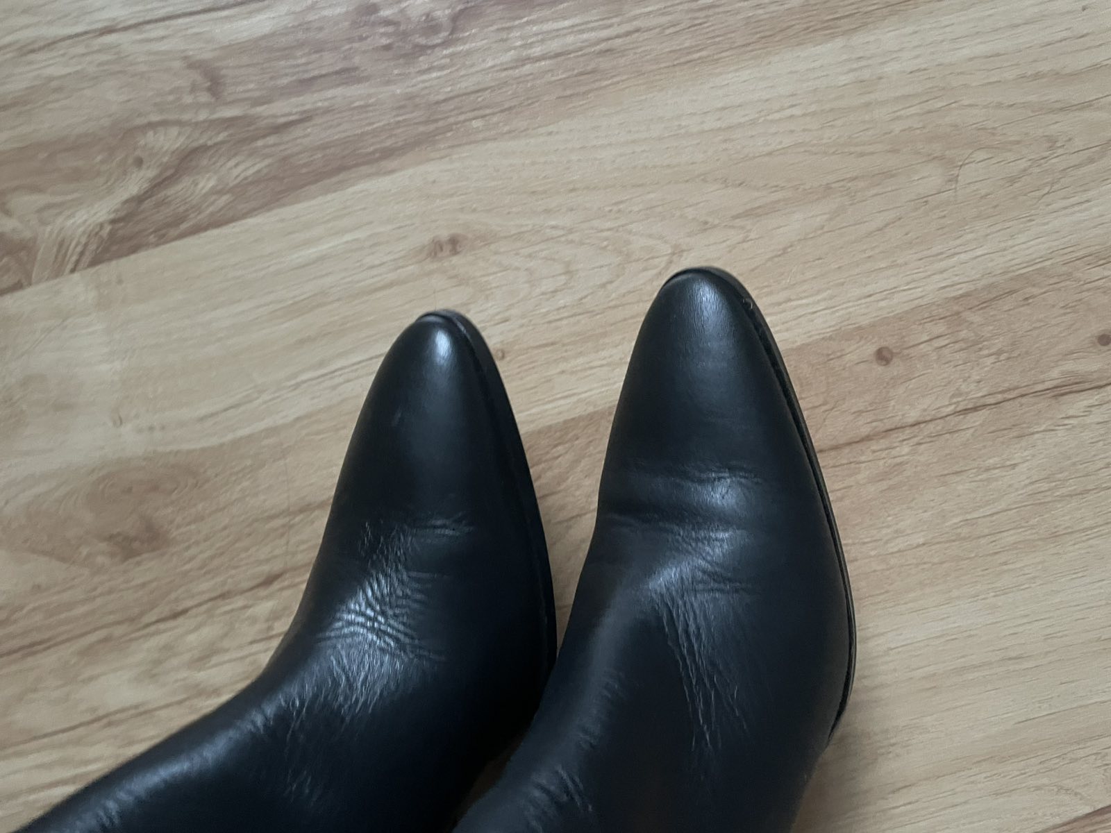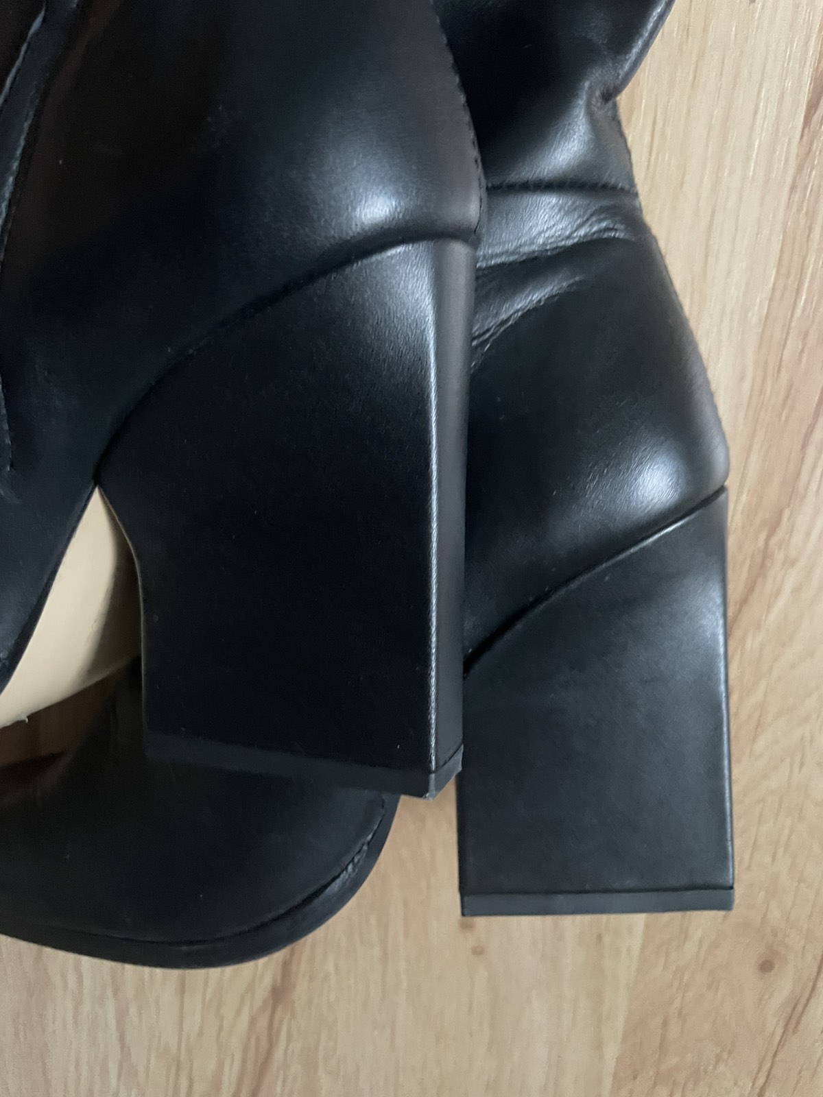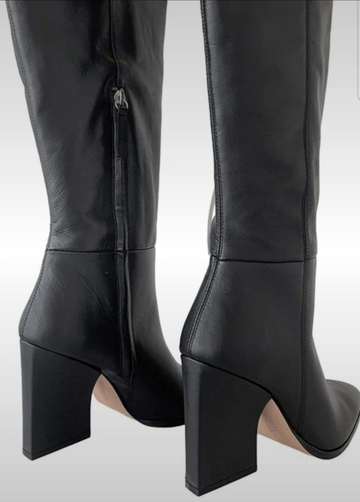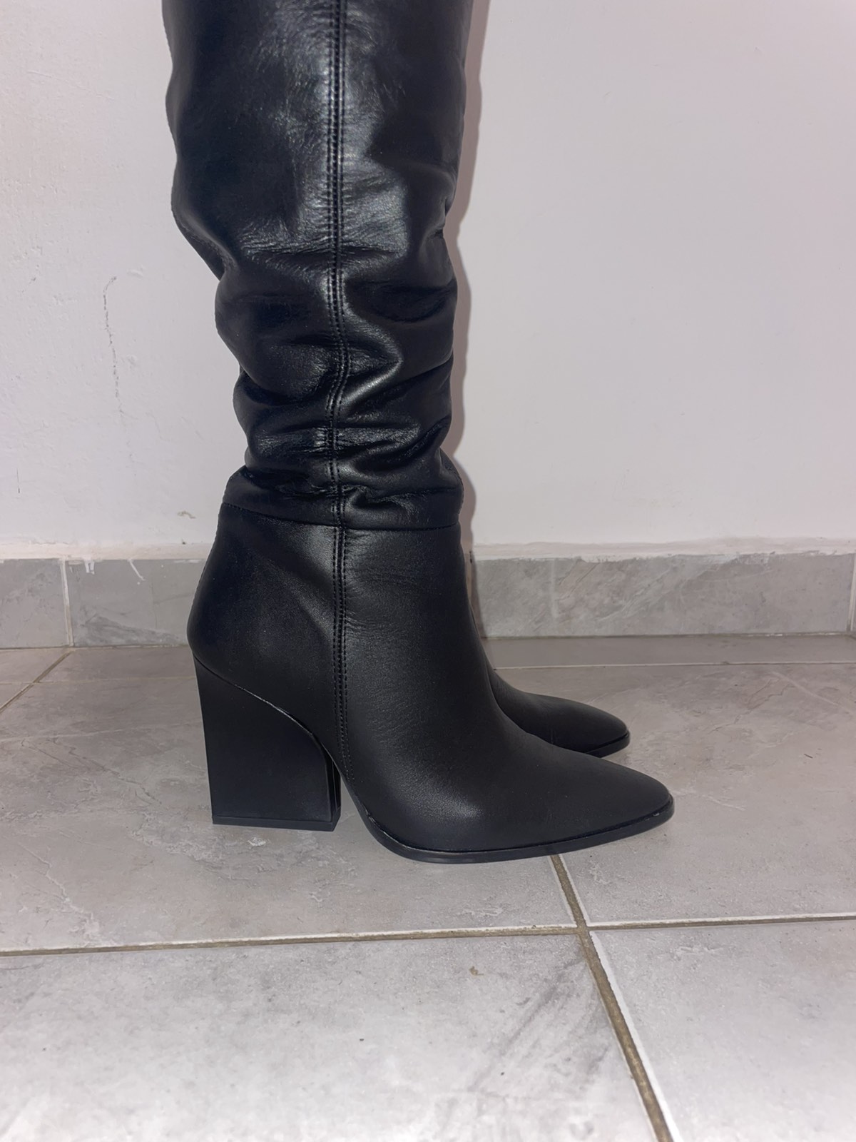 Obuté raz, nádherné, kožené, nad koleno, zips z vnútornej strany, na podrážke ešte nestrhnuta nálepka, veľkosť 36,majú drobné zaskrabnutie v hornej časti