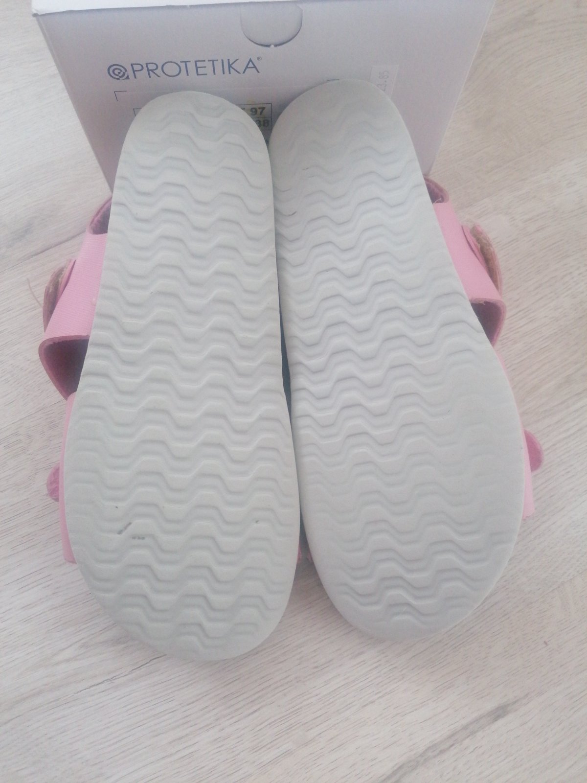 Predám šľapky protetika, dcéra ich nosila jeden školský rok ako prezuvky, dva menšie nedostatky som od fotila, celková dĺžka vnútorná 24cm,od päty po prsty 22cm. Číslovanie je podľa mňa vecsie, dcéra teraz začína nosiť veľkosť 38 tak podľa mňa sa hodia na veľkosť 37