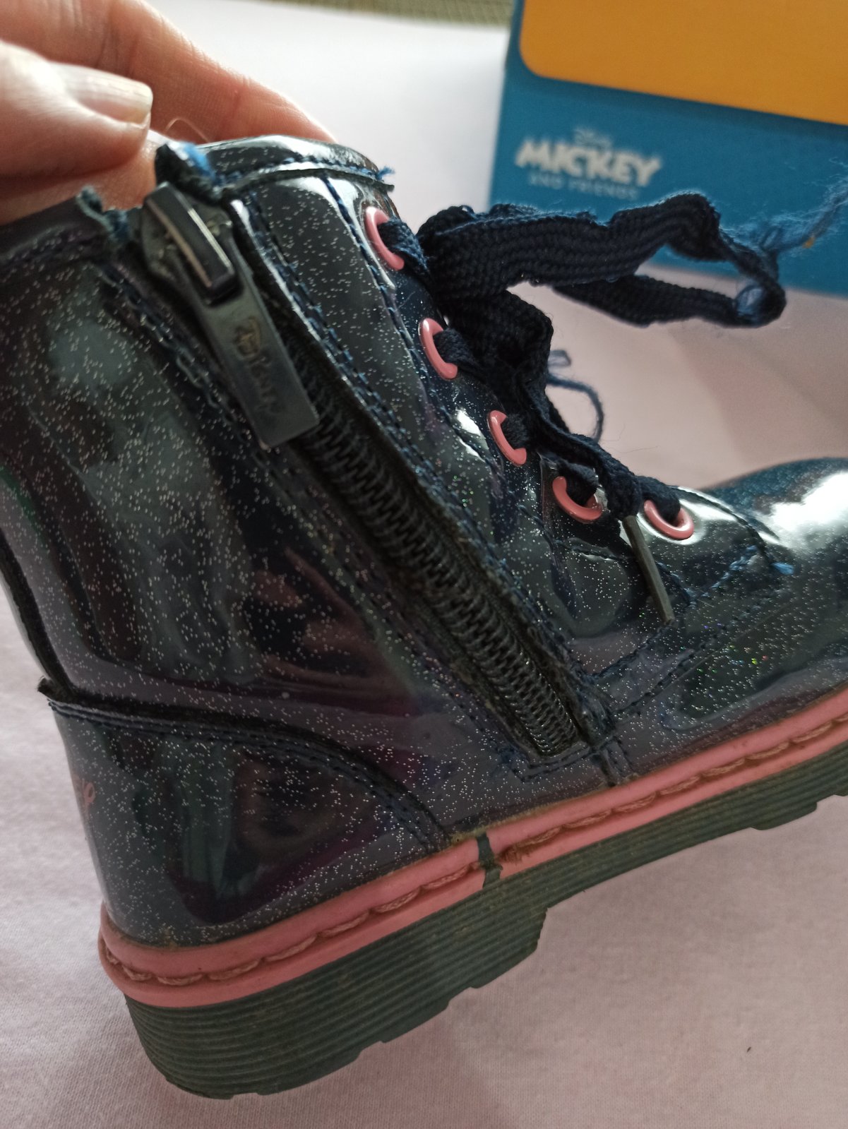 Vo veľmi dobrom stave, bez vážnych poškodení. Nosené iba jedným dieťaťom jednu sezónu. Vhodné ako prechodná obuv, prípadne aj na teplejsiu zimu.