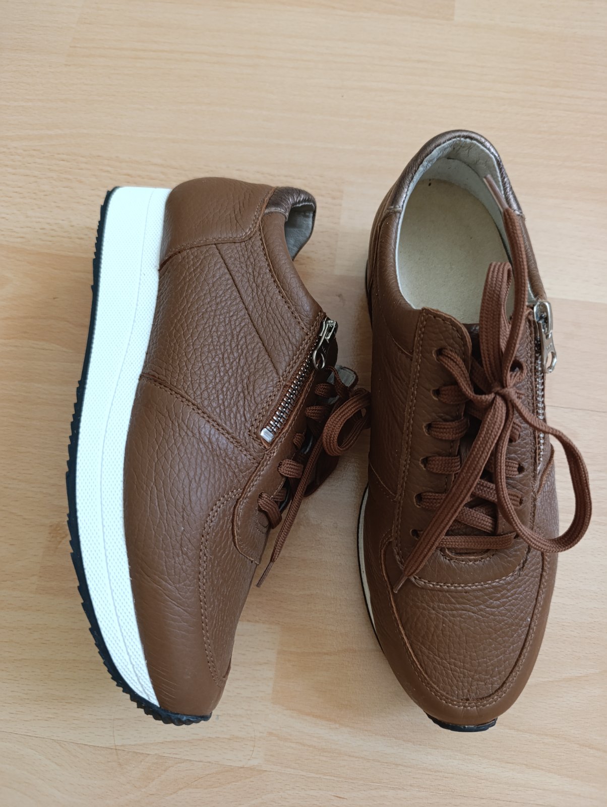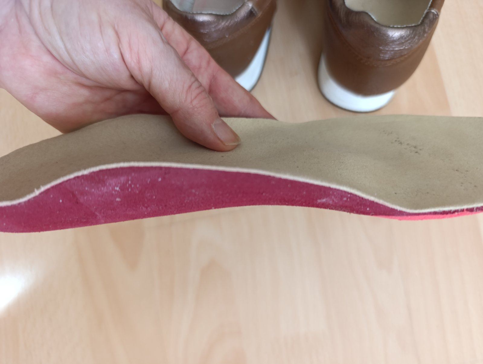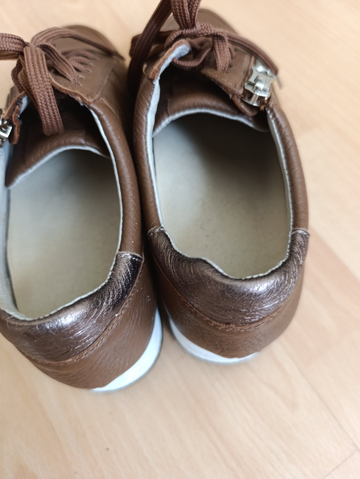 Veľmi pohodlné,ale mne sú veľké , drahá značka Vitaform,pov.cena 119 €, vložka sa dá vybrať, môžte si dať namiesto nej aj tenšiu. Farba stredne hnedá.