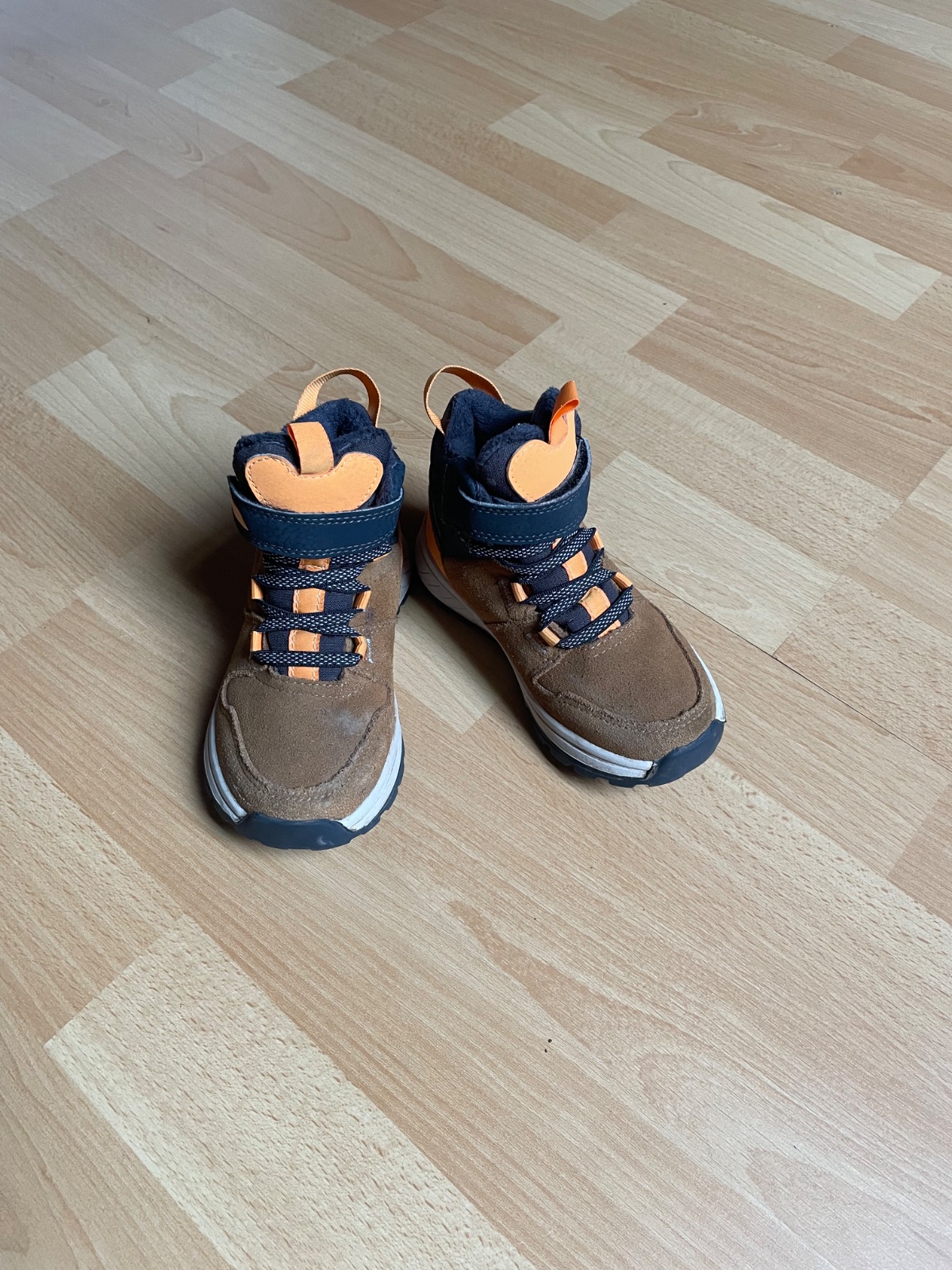 Používané zimné topánočky. Bežné známky používania, trochu vyblednutá farba od soli inak bez poškodenia. Nepremokavé, teplučké, super sa obúvajú . Lístok s veľkosťou sme odstrihli, riaďte sa pros...