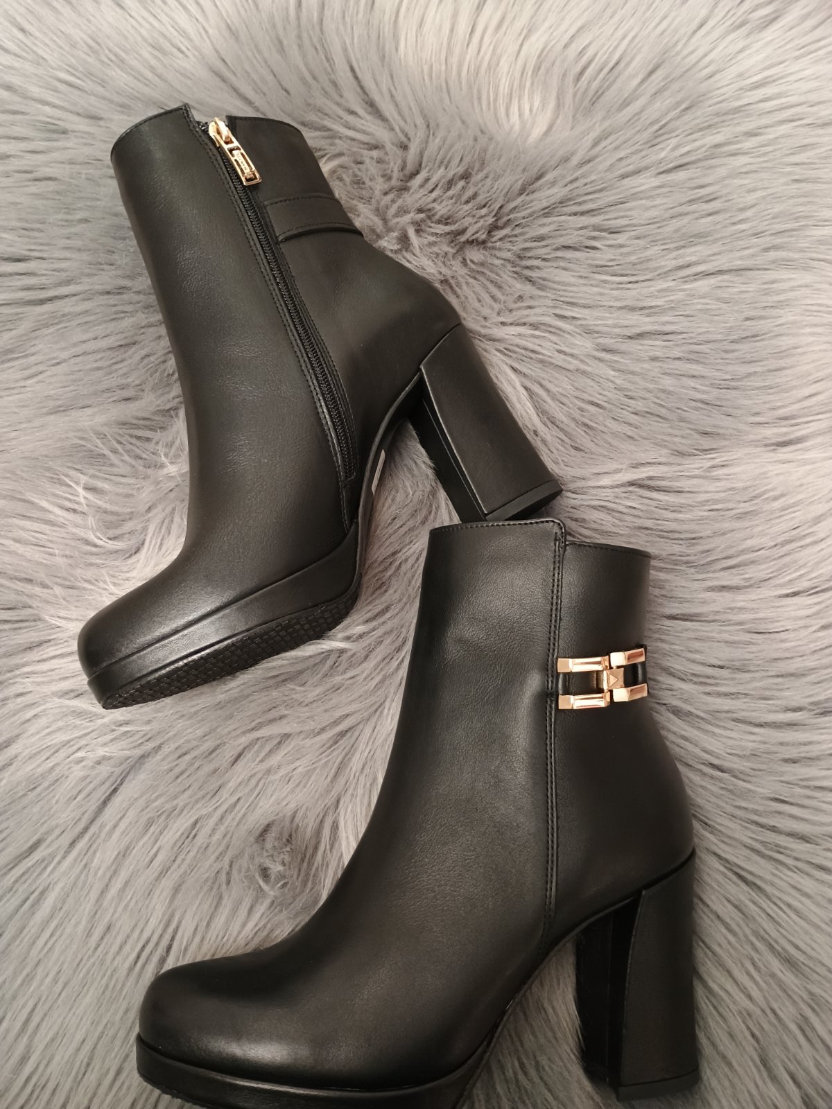 Značka Kordel priniesla luxusnú novinku pre ženy, ktoré vedia, čo im svedčí. Členkové čierne čižmičky na vysokom opätku pre dámy v elegantnom štýle. Čižmy sú doplnené peknou prackou. Podpätok má ideálnu hrúbku, čo umožní pohodlie počas celého dňa. Tento model skvelo vyznie pri kožuchu, či kabáte. Kožený materiál sa krásne prispôsobí k vašim chodidlám a zabezpečí komfort počas nosenia. Čižmičky boli dôkladne prepracované s dôrazom na pohodlie.