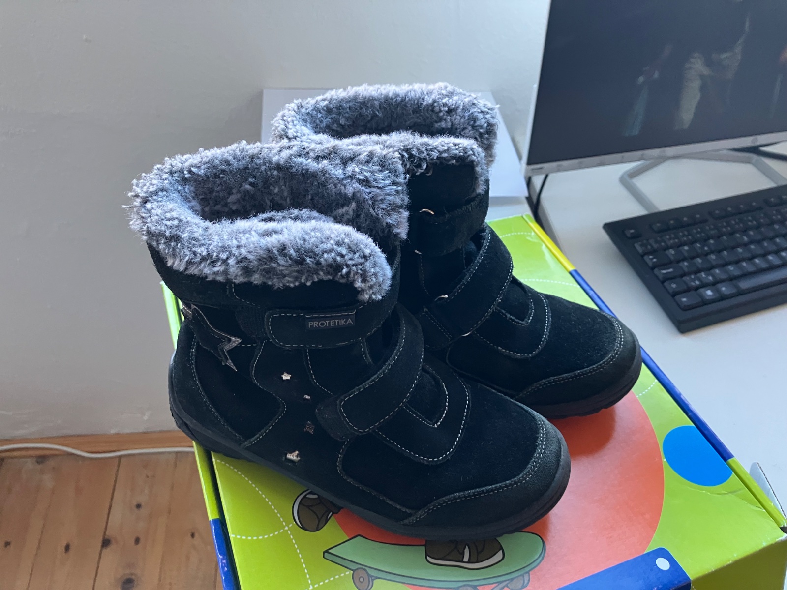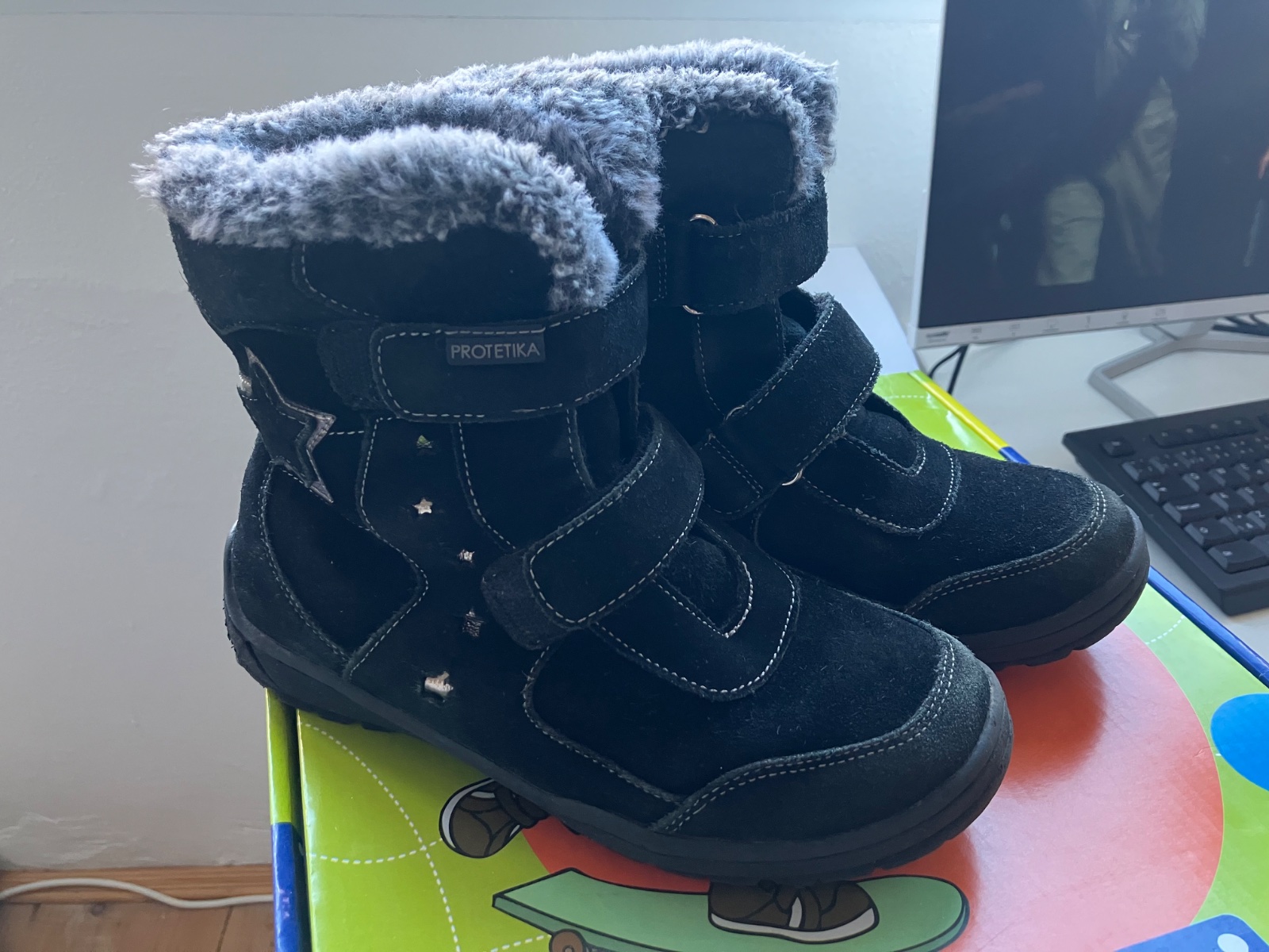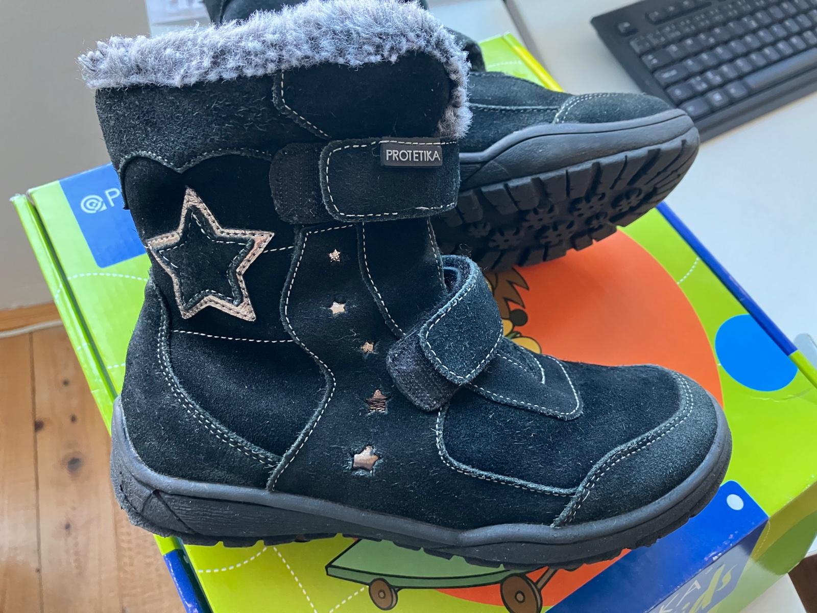 Kozene cierne zimne topanky znacky Protetika, nosene jednym dietatom. Teple, pohodlne. Cena bez postovneho.