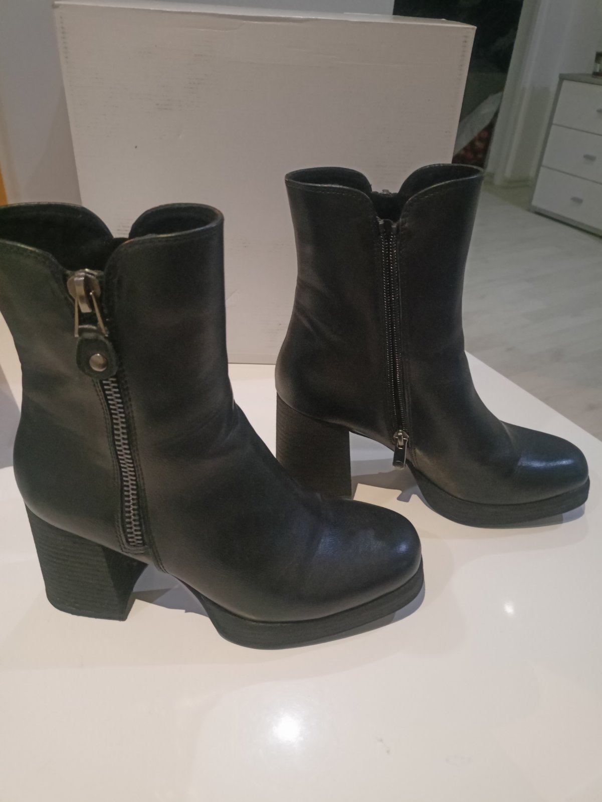 Predám dámske čižmy veľkosť 38, značka Marco Tozzi, kupované v Robel, su na opätku, pohodlné, predávam zo zdravotných dôvodov, nemôžem už opätky nosiť. Topánky boli aj nosené príležitostne.