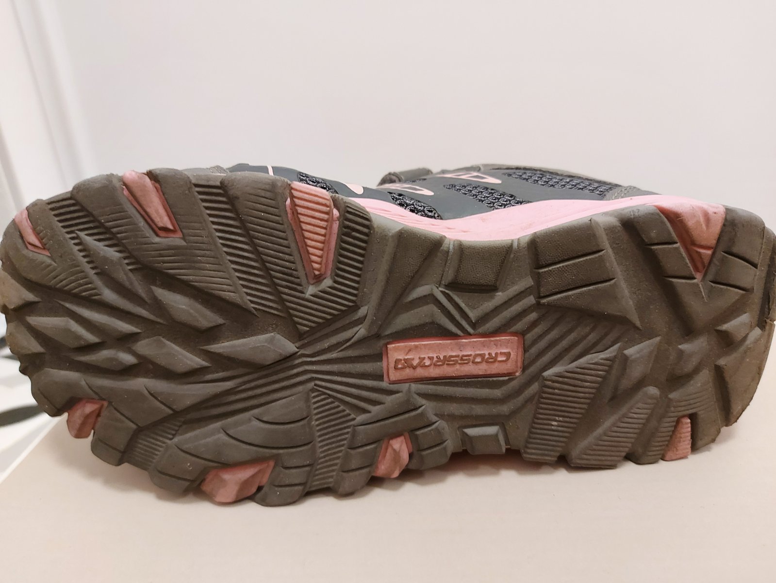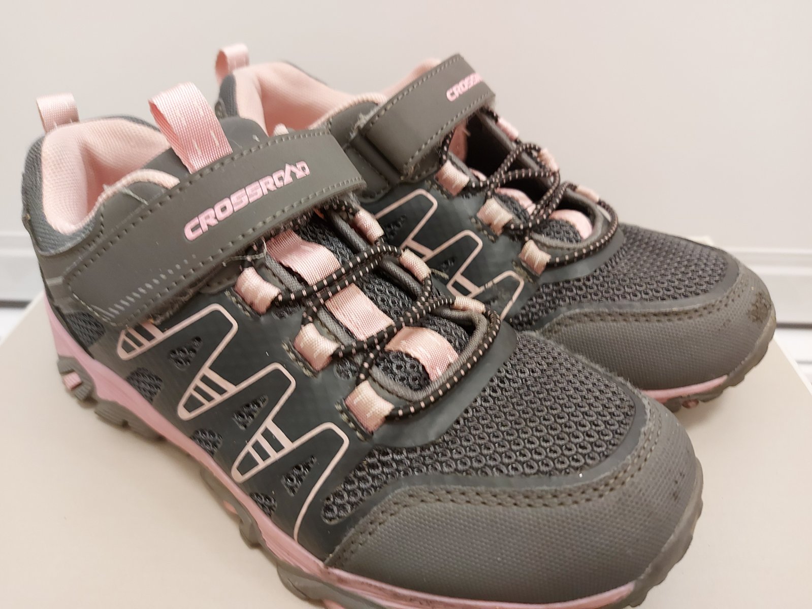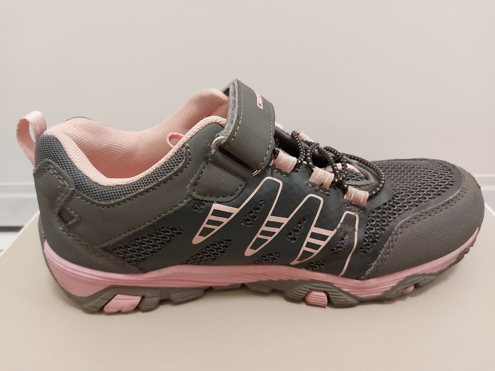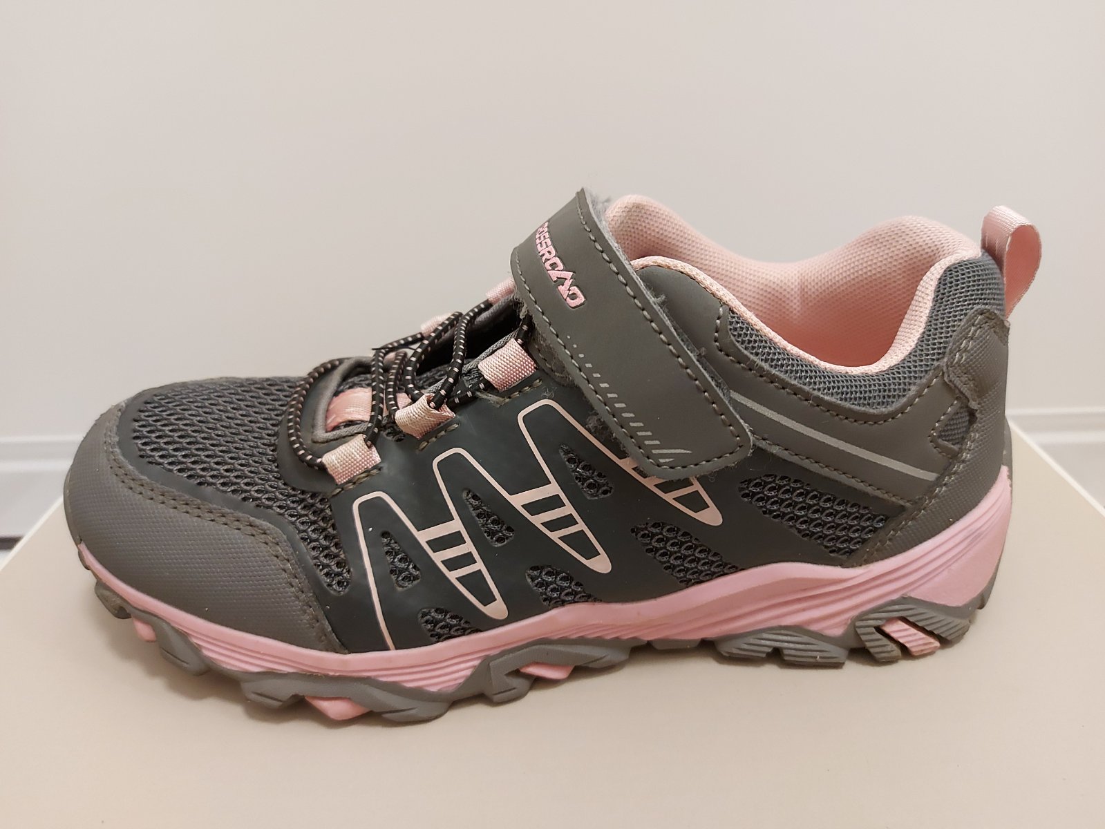 Dievčenské turistické topánky, málo nosené. Zapíananie na suchý zips, sieťkovaná úprava, vhodné teda aj do teplého počasia