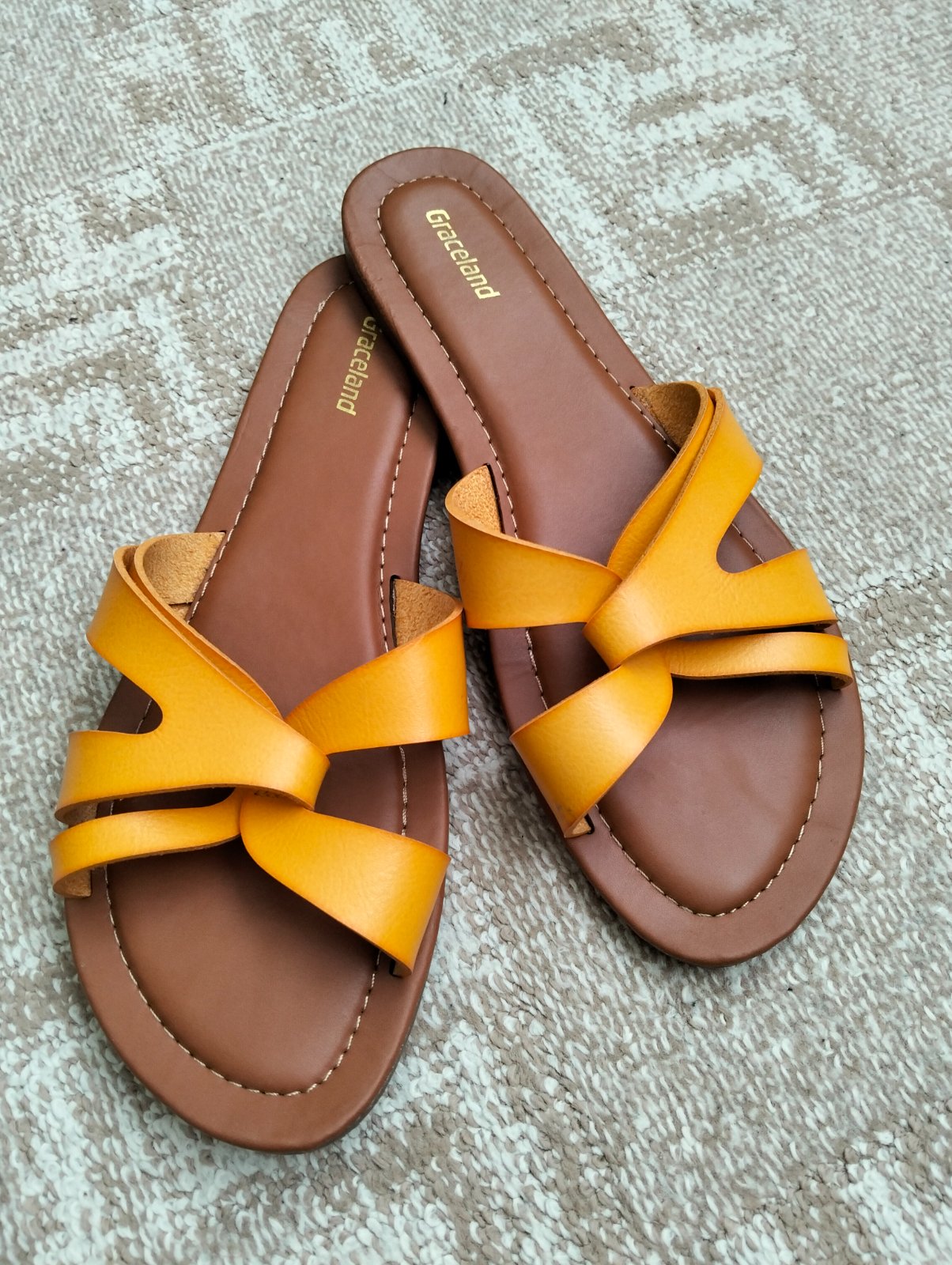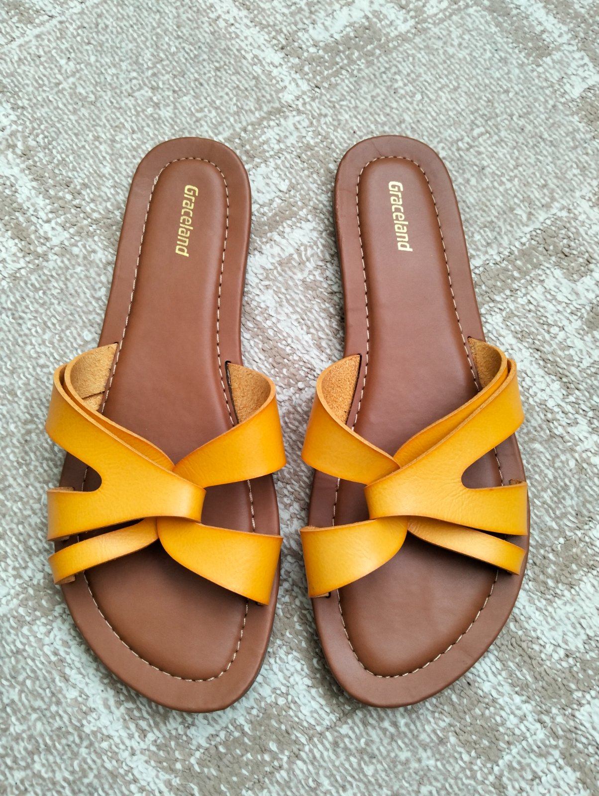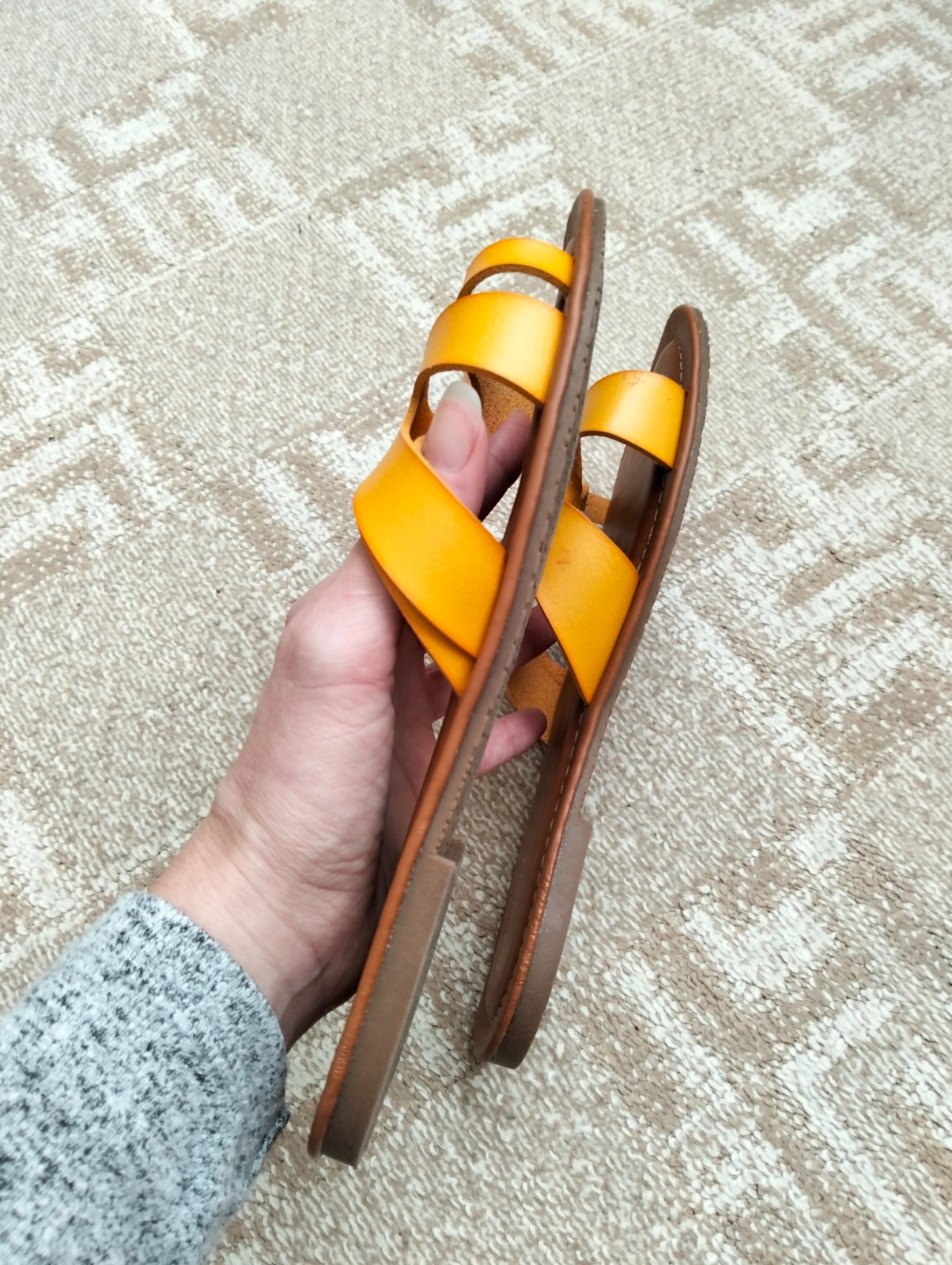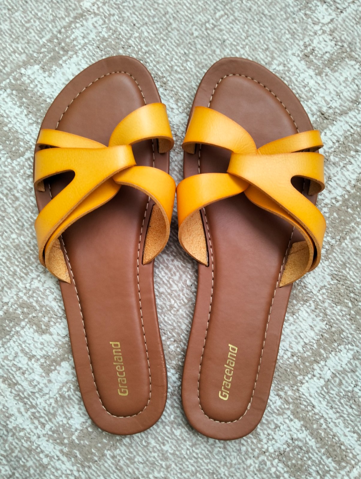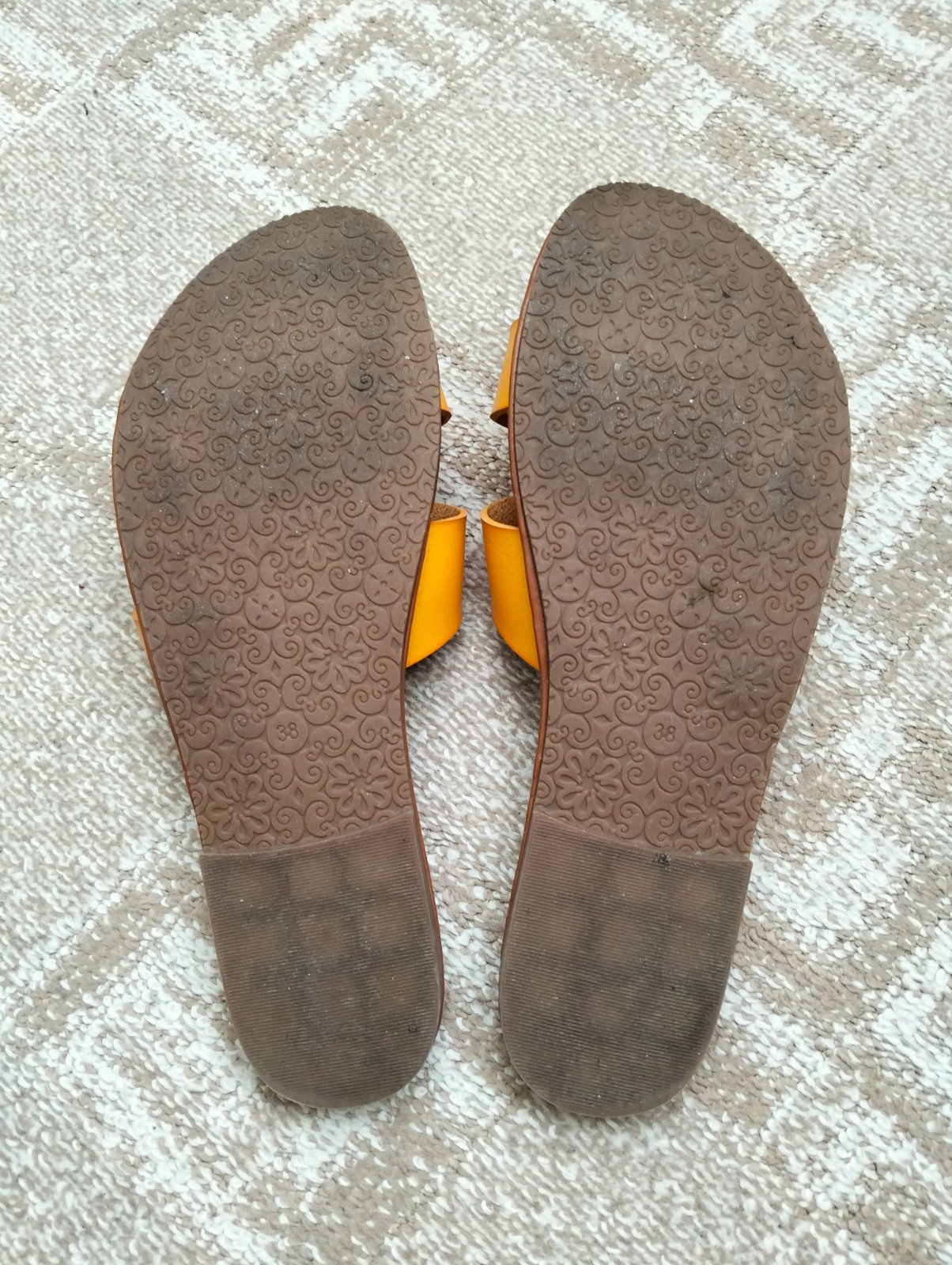 Krásne šľapky na leto v žltej farbe. Obuté len zopár krát, top stav bez chybičiek krásy. Dĺžka 25 cm.