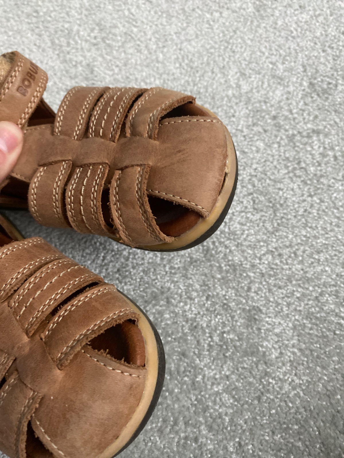 Sandálky nosené jedno leto na striedačku s inými. Zapínanie na suchý zips. Šuchnute špice, viď. foto. VD 15,3 cm VŠ 6 cm