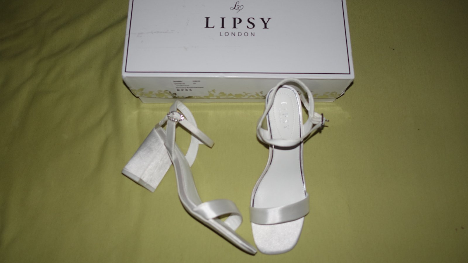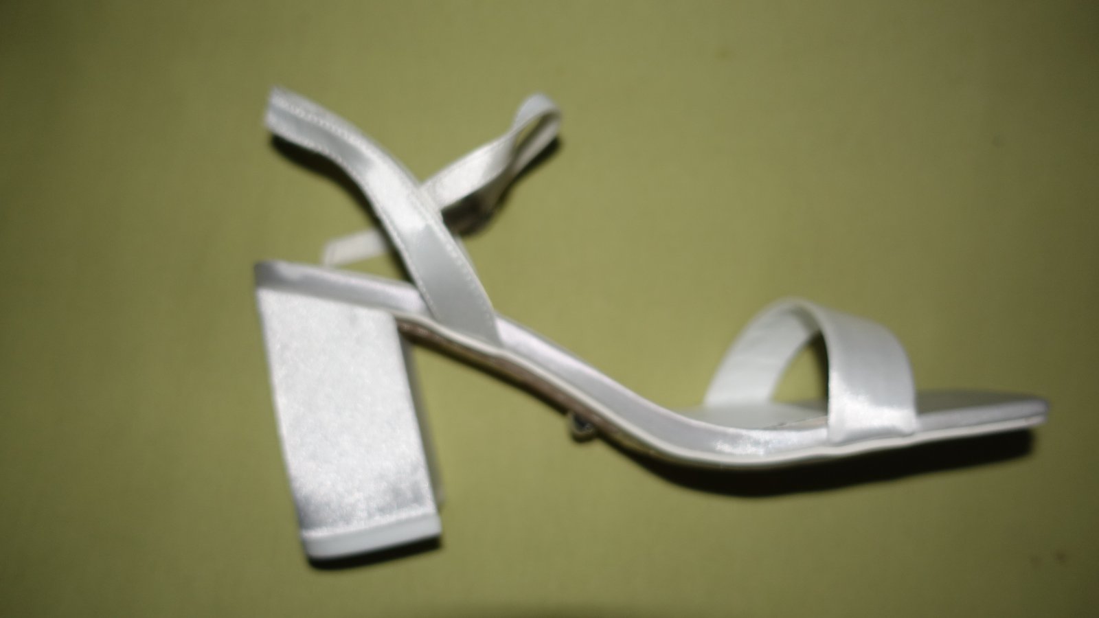 Krasne sviatocne sandale- nove, v krabici. Su satenove, original su svadobne, ale dcera si ich kupovala na vencek, ale su jej uzke (ma siroku nohu, tieto su na taku normalne siroku nohu).