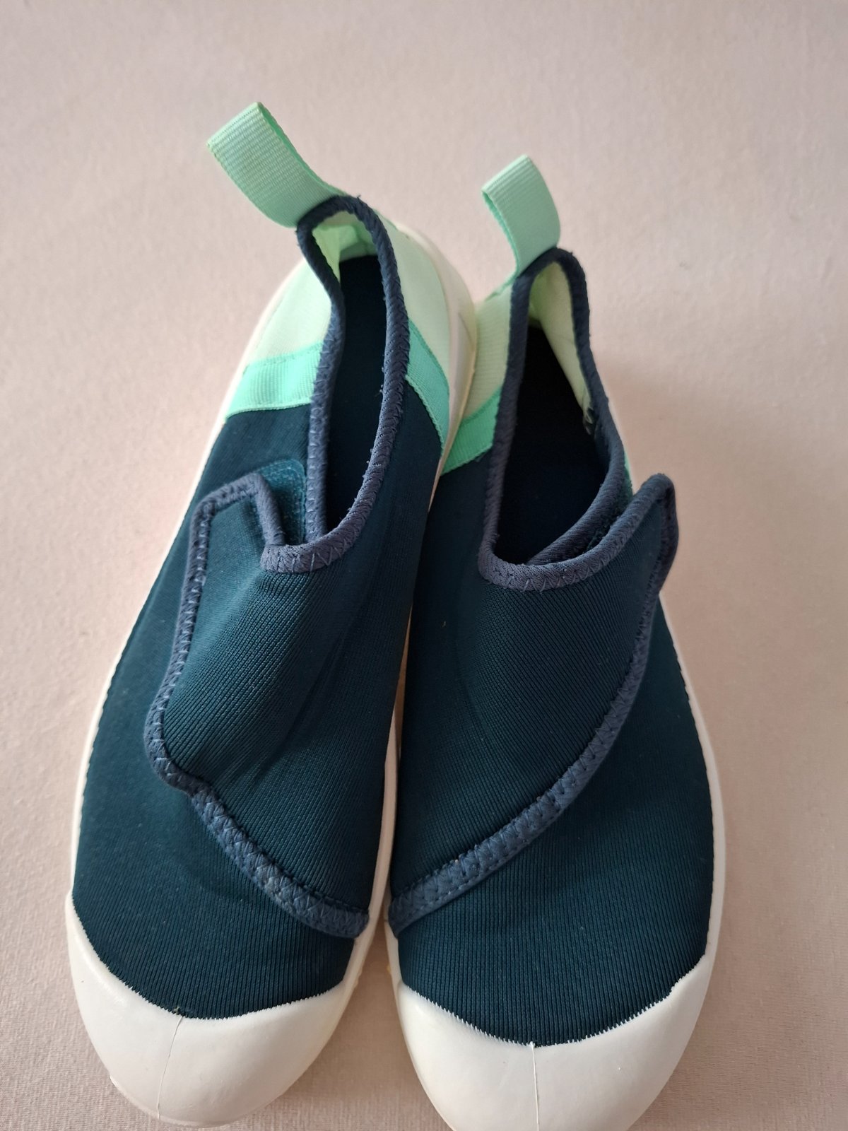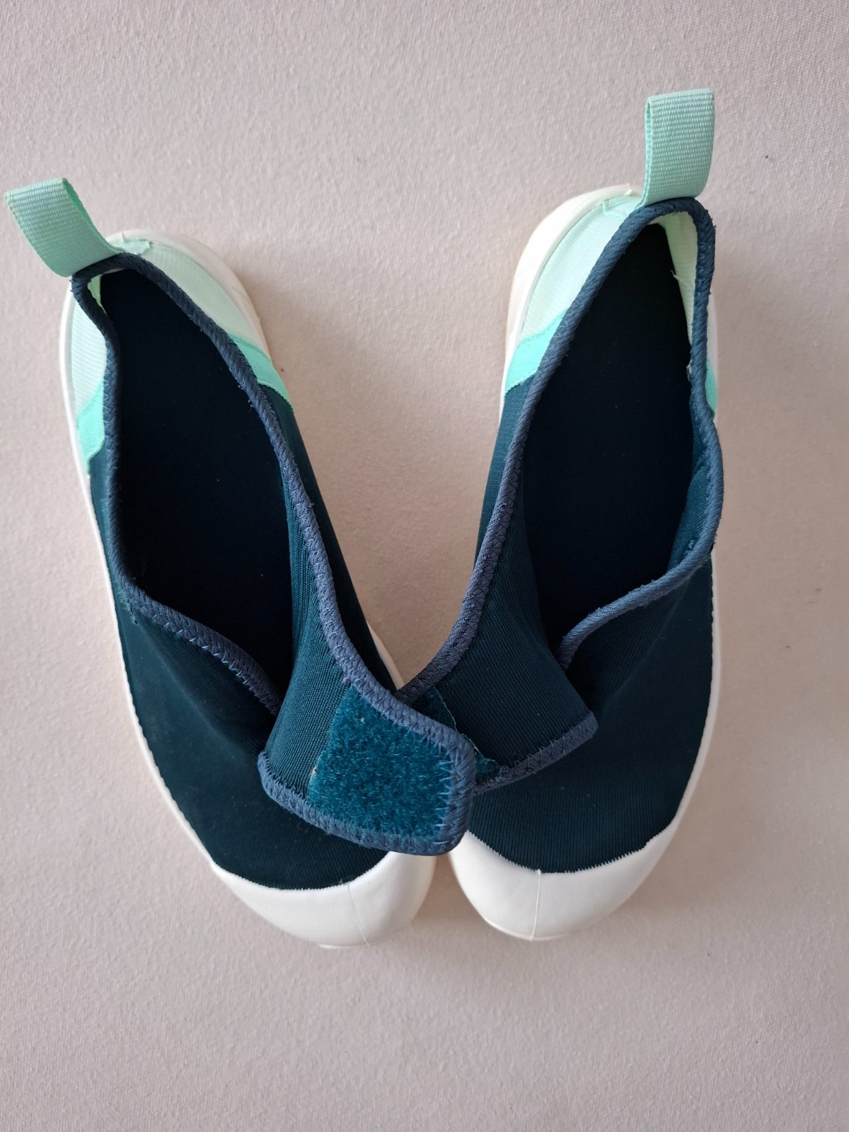 Topánky do vody. Veľkosť 34/35. Vnútorná dĺžka cca 21,5 cm. Funkčné so známkami použitia. Chyba vnútorná vložka.