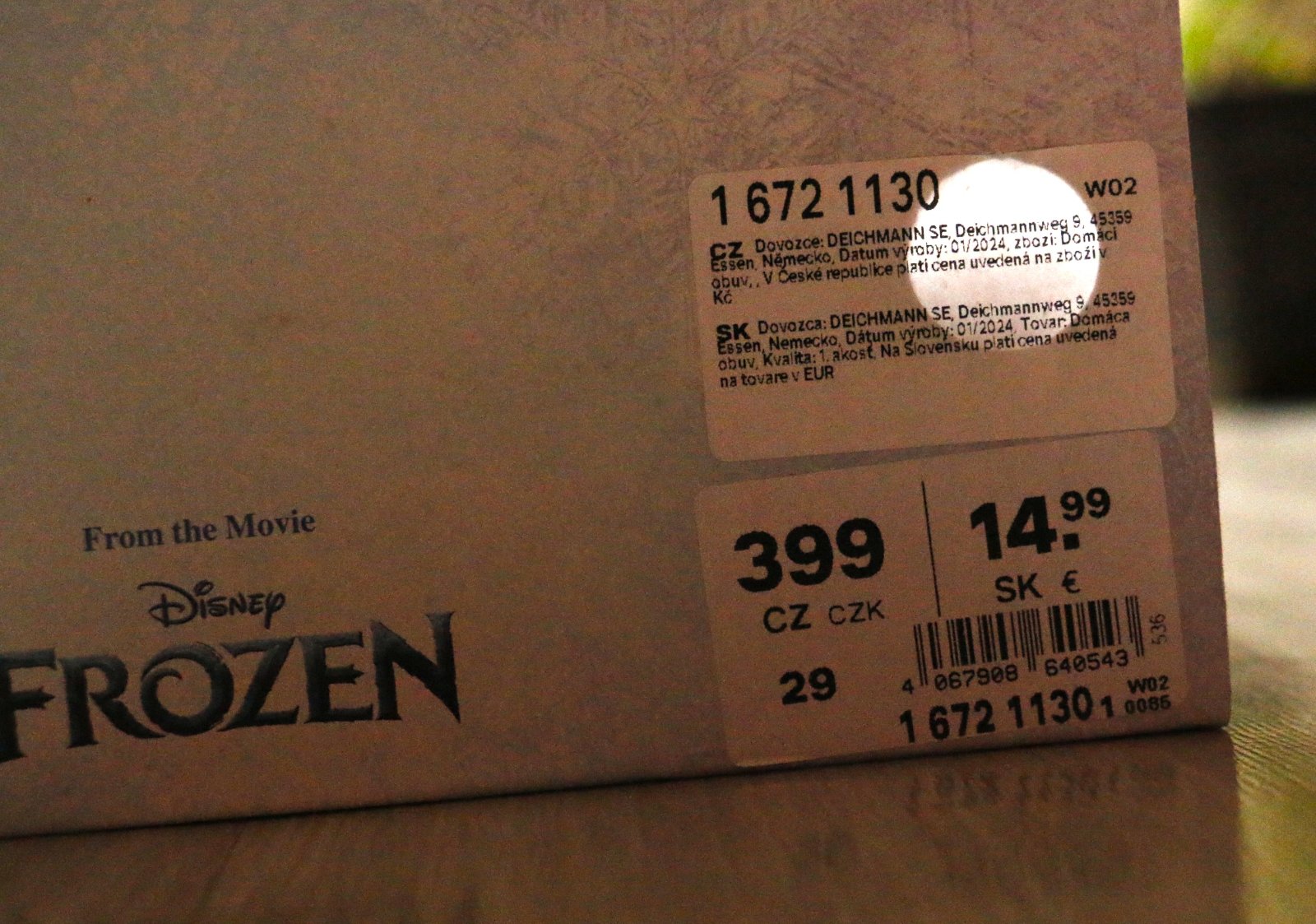 Nové- krásne, bledomodré, trblietavé papučky Frozen/ Elza. Veľkosť 29