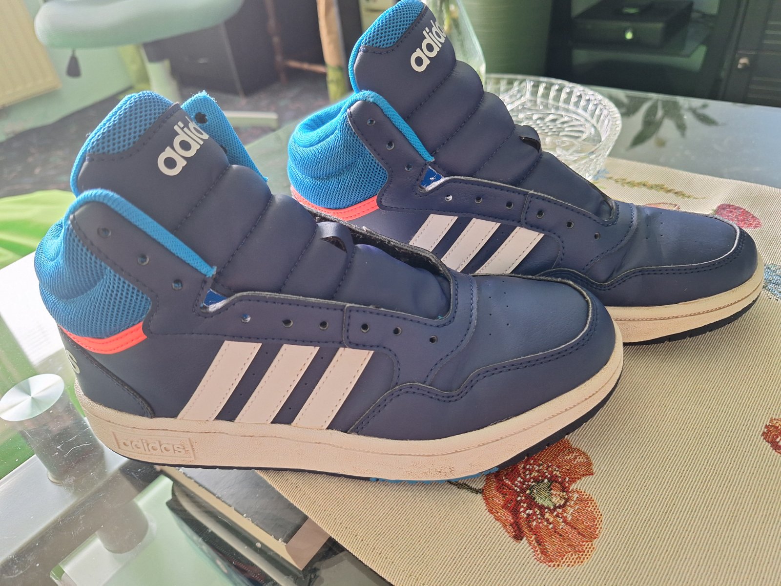 Ponúkam minimálne nosené tenisky Adidas, nepoškodené, veľkosť 37,5 (US 5, FR 4,5 ), vnútorná výstelka 24cm. Mäkké, pohodlné, s pôvodnými šnúrkami tmavomodrej farby.