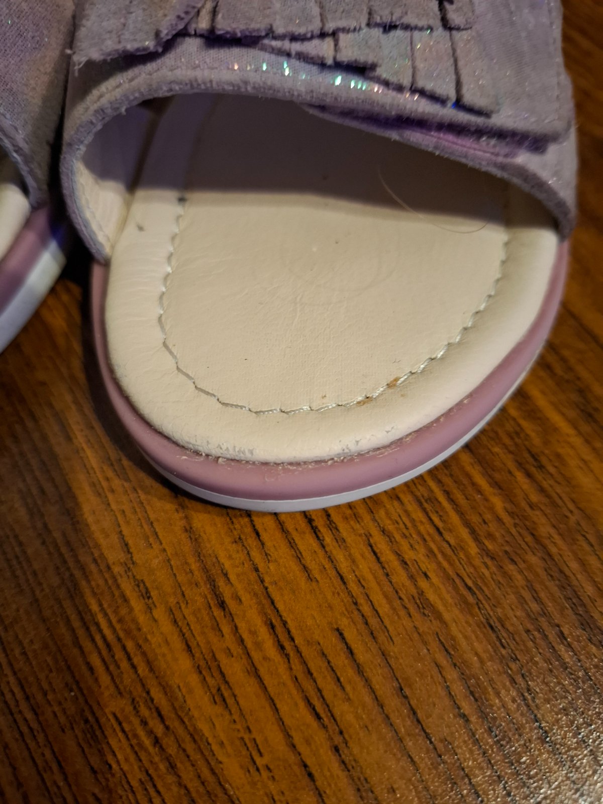 Sandalky vonku obuté len raz a mesiac nosené sporadicky ako prezuvky v škole.