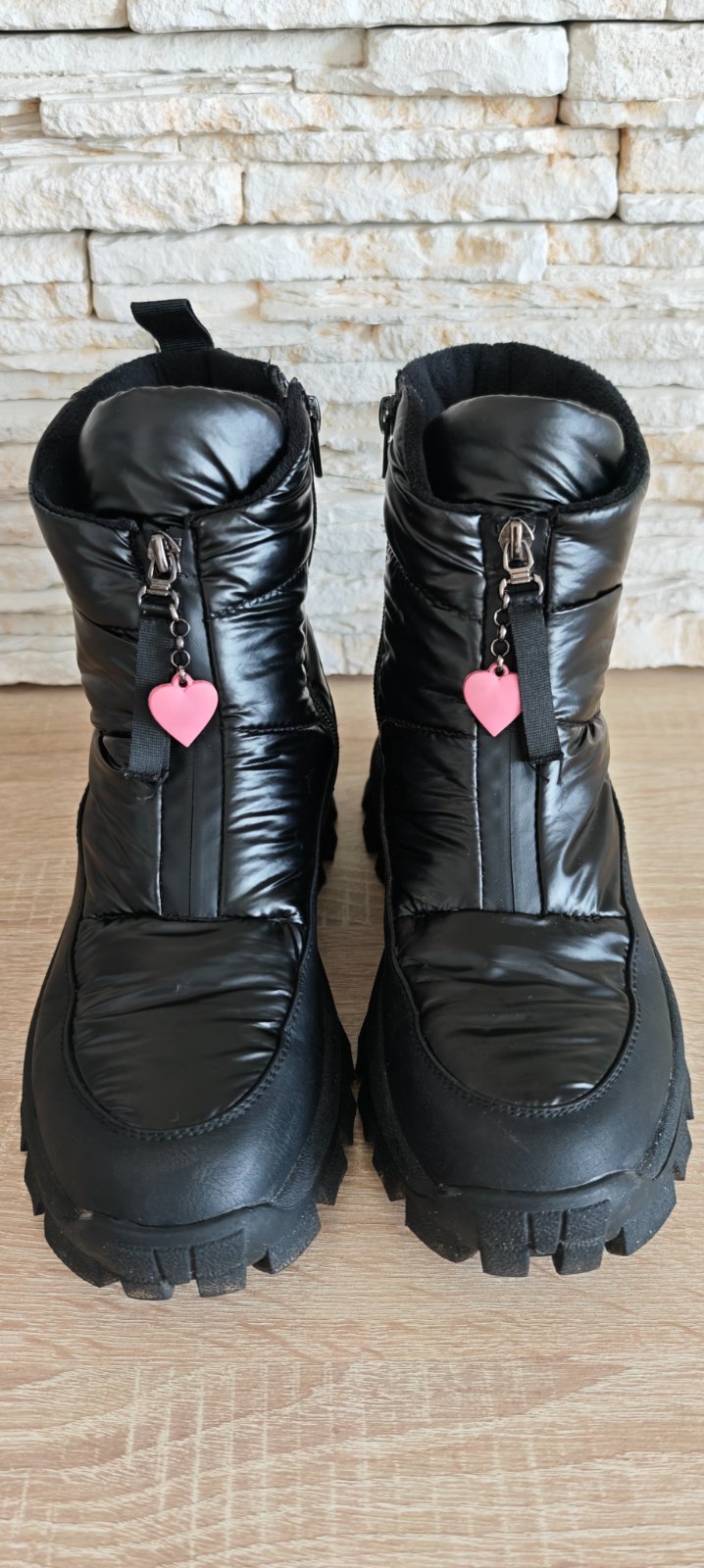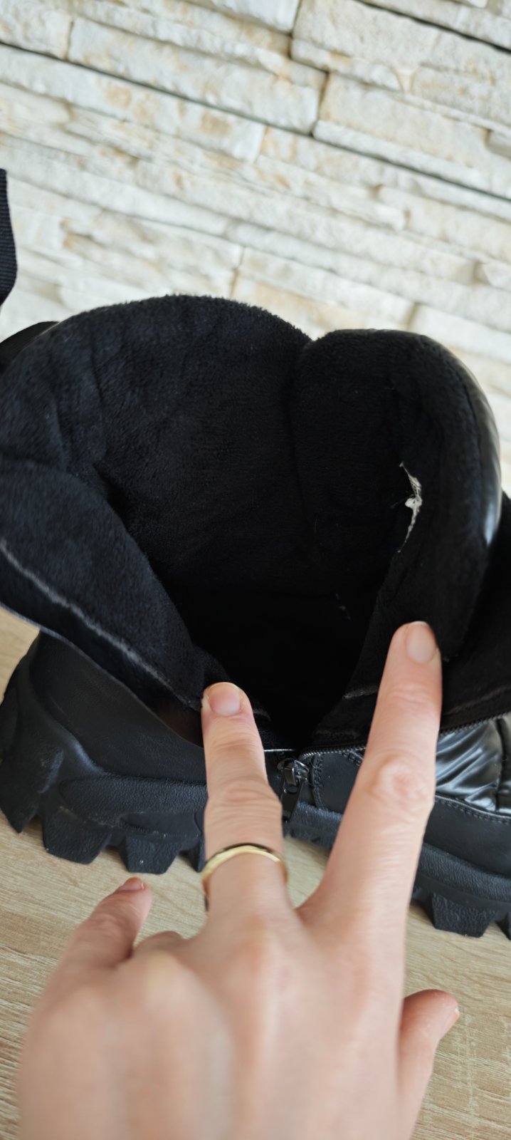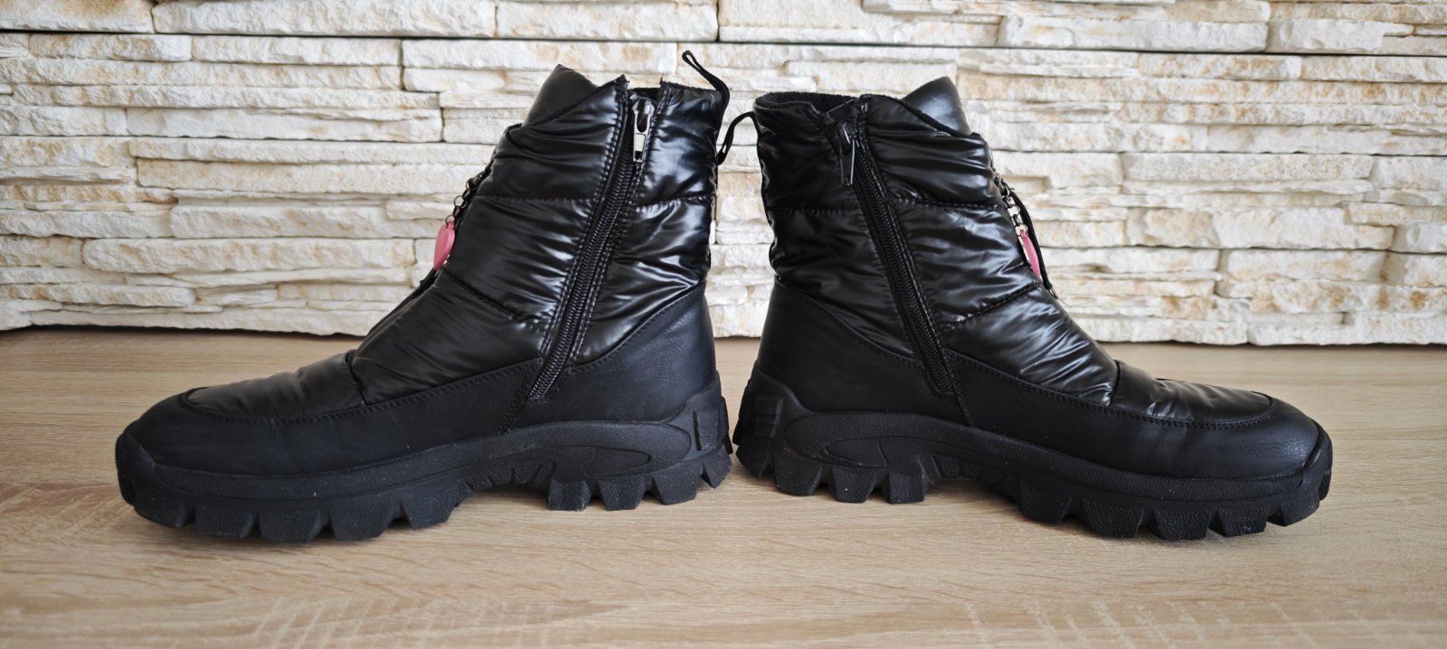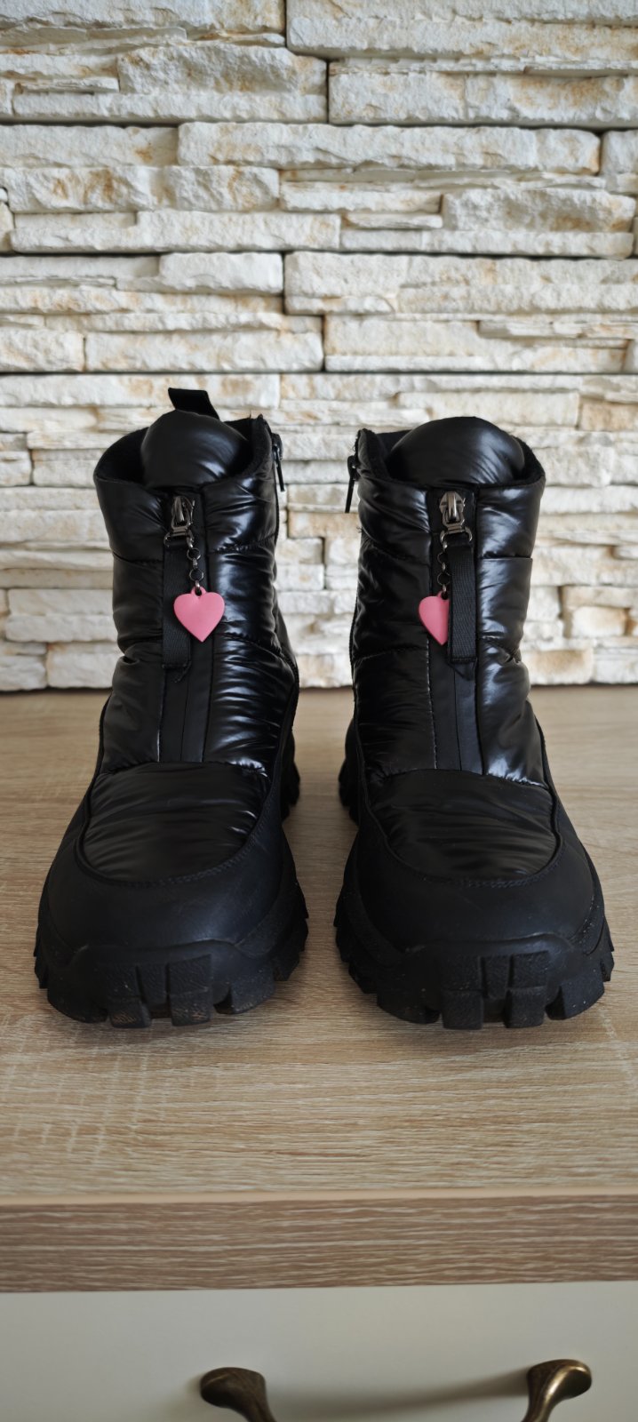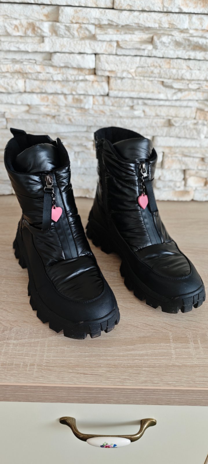 Predám minulú sezónu/párkrát obuté snehule/ z viacerých materiálov zn. Reserved, nosené mojou dcérou na striedačku s ďalšími topánkami ( veľmi rýchlo dcére rastie noha, dnes nosí vel. 42, to len pre predstavu, že ich nemala ani čas vynosiť a už jej boli malé). Snehule sú ako nové, majú zaoblenú špičku s gumovou vložkou. Vysoký zvršok po členky. Zapínanie na bočný zips. Vnútorné zateplenie flísom. Pútko na päte. Hrubú podrážku z termoplastickej gumy. Veľkosť sedí, ja mám 39-ku nohu a sú mi dobre. Vnútorná dĺžka 25-25,3 cm. Dosť zle sa to meria ale ako píšem veľkostne sedia.
