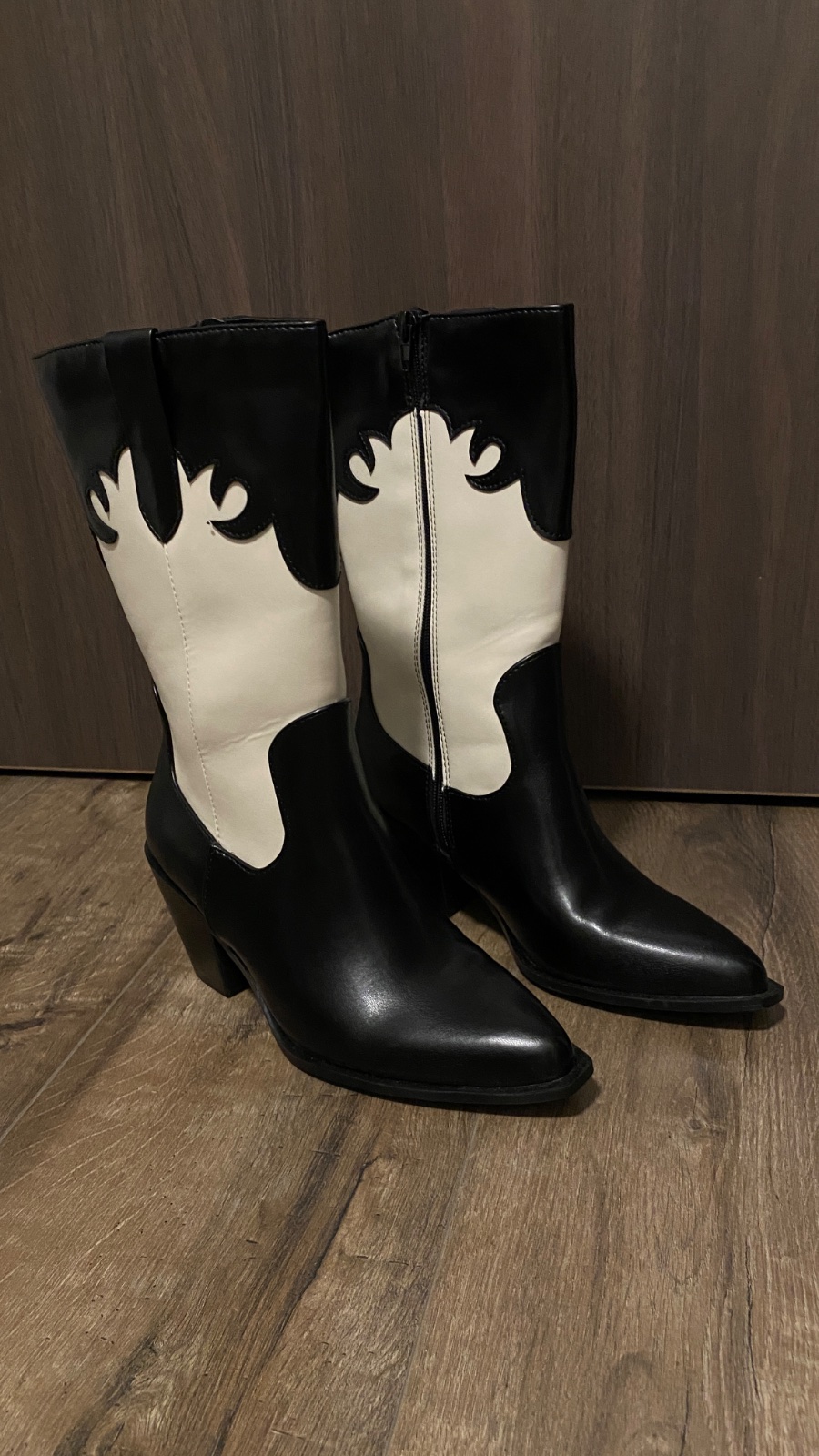 trendové čierno-biele kovbojky 2x obuté aj to len v interiéri, velkost 36, mierne zateplené