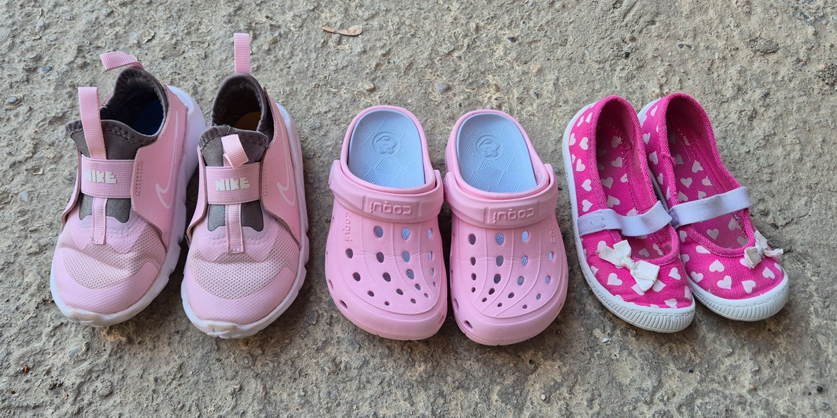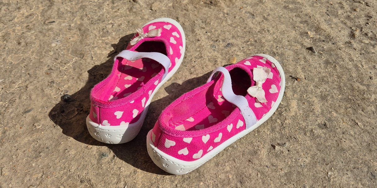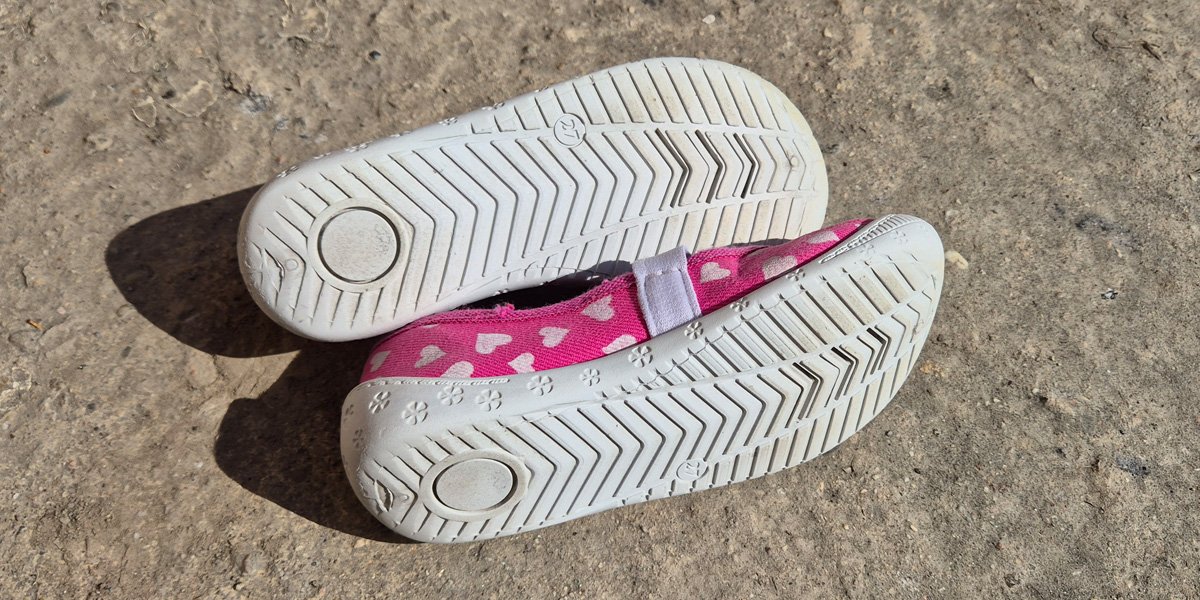 -dievčenské plátenné topánky (papuče) s ružovým vzorom sŕdc a bielymi mašličkami v dobrom stave, veľkosť 27, cena 3 €