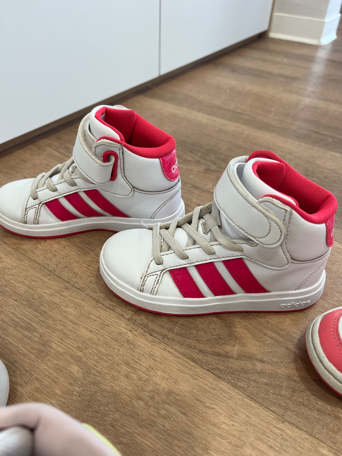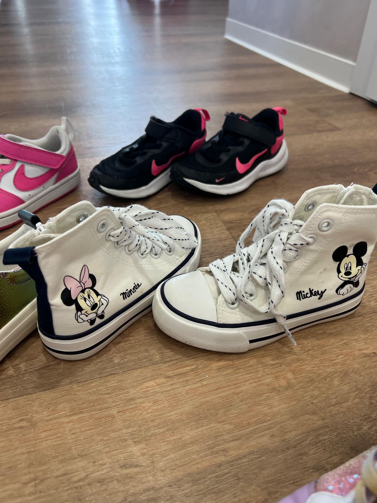 Predávam všetky nám už malé tenisky , uložené v radoch od horného 28 veľkosť , až po prvý rad 25…. Tenisky a čižmičky predávam len úplne nepoškodené , sú umyté , ale stačí ich dať dompracky a budú úplne biele , ako nové 🩷 kriklavo ružové tenisky nazuvacie sú úplne nové , veľkosť 27 za 15€, tiež holografické tenisky next 27,5 úplne nové za 10€… ostatne sú od 7€, na cenách sa viem určite dohodnúť
