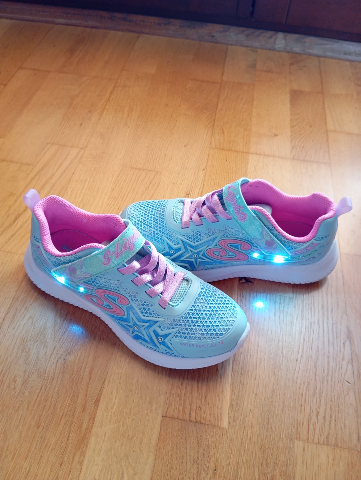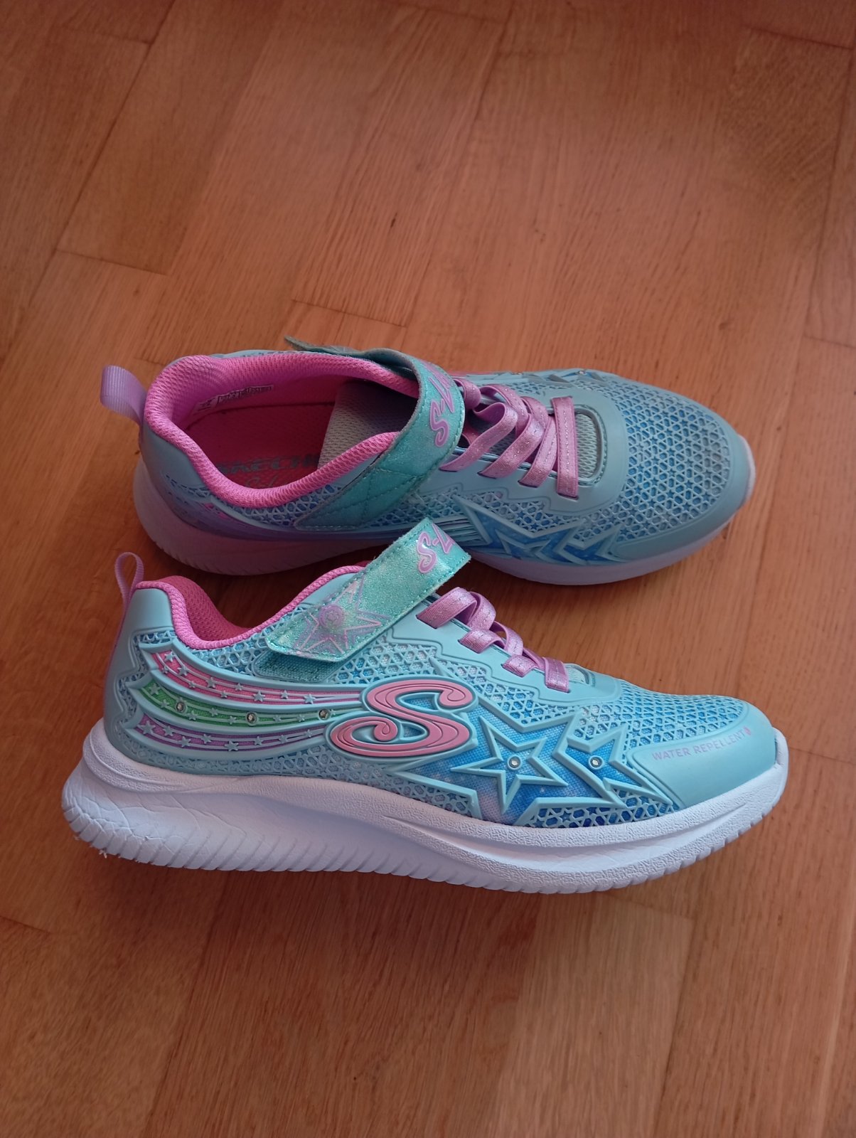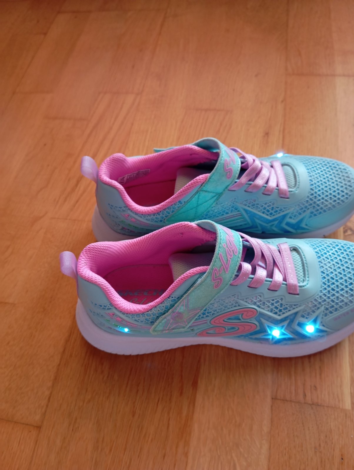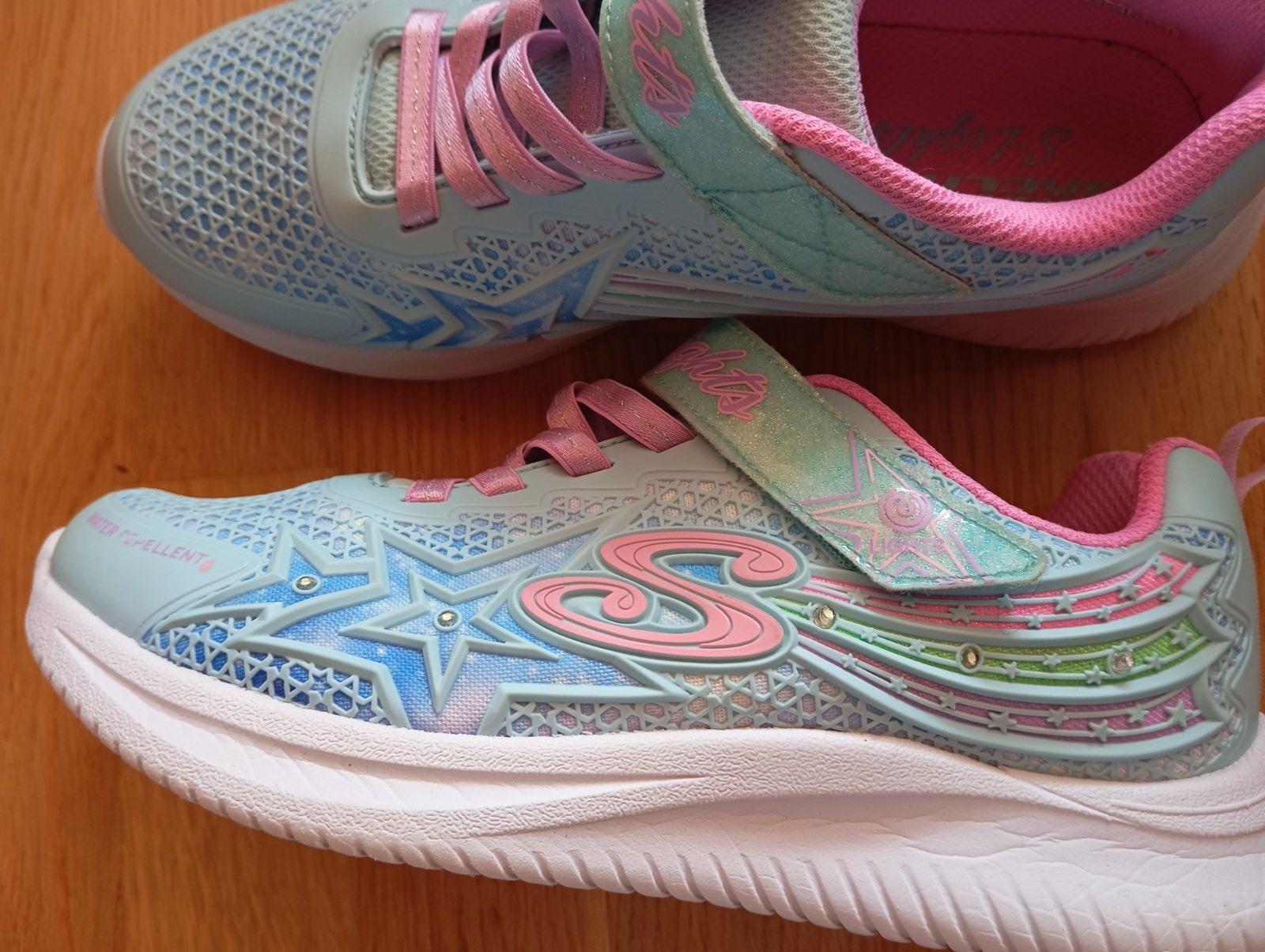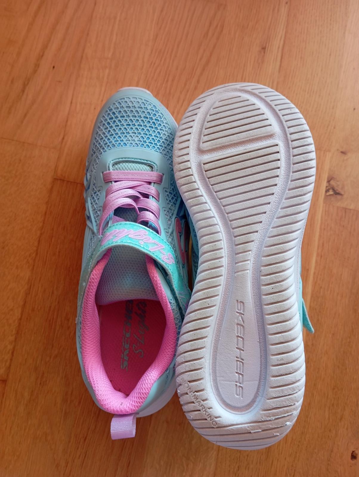 Veľmi pohodlné tenisky Skechers, č. 36. Super stav, funkčné svetielka, blikajú pri chôdzi, dajú sa však vypnúť tlačítkom na suchom zipse. Biela podrážka, čiže sú vhodné aj na telesnú. VD- 23,7 cm nadoraz.