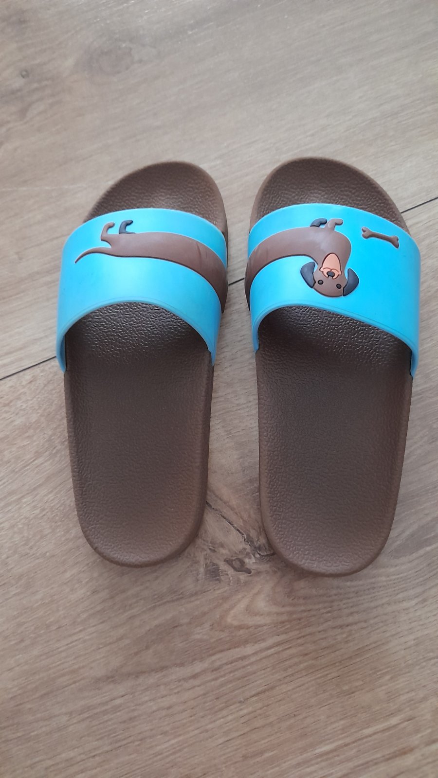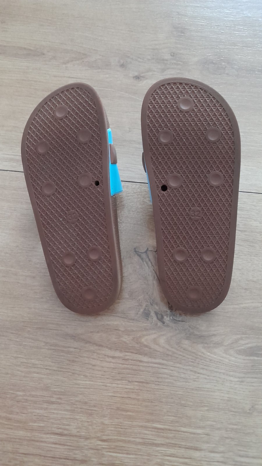 Predám detské šľapky v počte 2 kusy, dĺžka je na foto. Spolu cena za 5 € + poštovné ako balík na poštu.