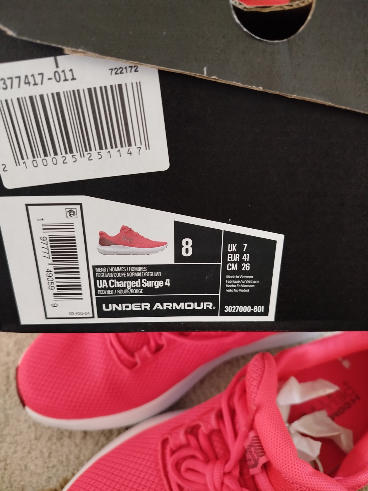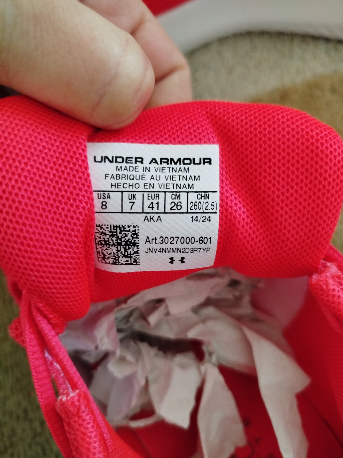 Nové veľkosť 41 značka under armour ale podla mňa sedia na veľkosť 40 keďže vnútorná dĺžka je 26 CM super na leto na beh všade na internete vypredané