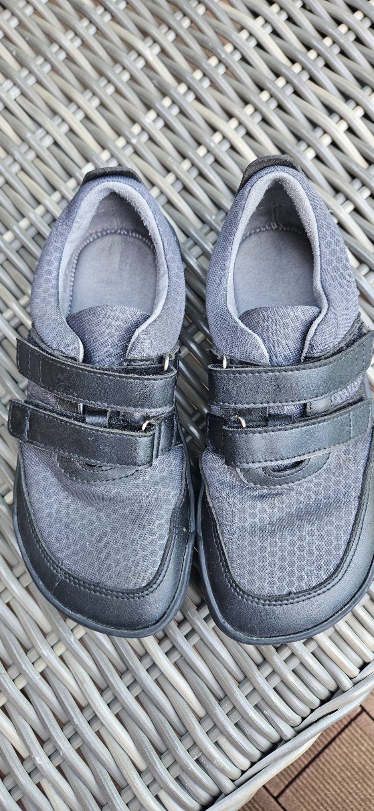 CRAVE barefoot tenisky v 32, sede, VD: 21,7 x 7,9 cm, nie su vhodne na vyssie priehlavky, top stav, obute parkrat, podrazka nezosuchana, suchace drzia pevne, ciste, od suchacu je na jednom mieste vytiahnuta latka - na foto. (PC 50e), cena 30 eur