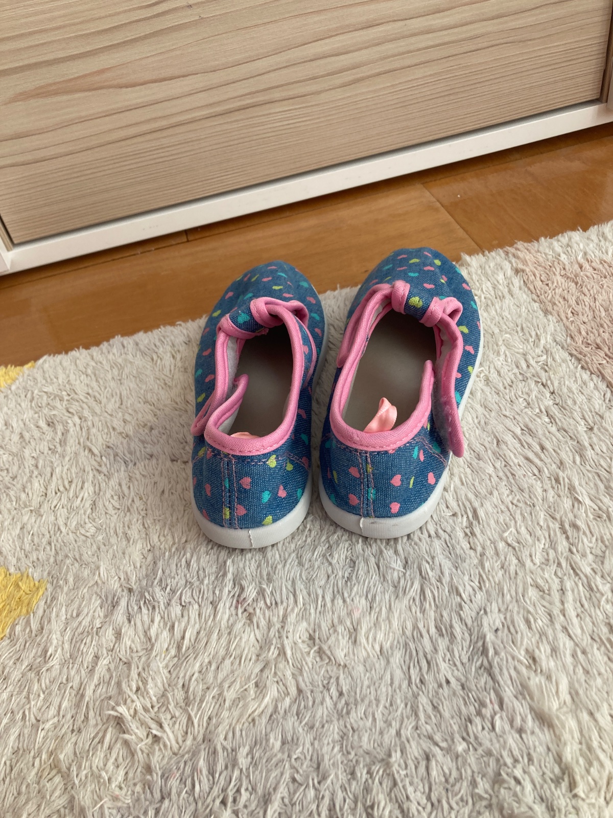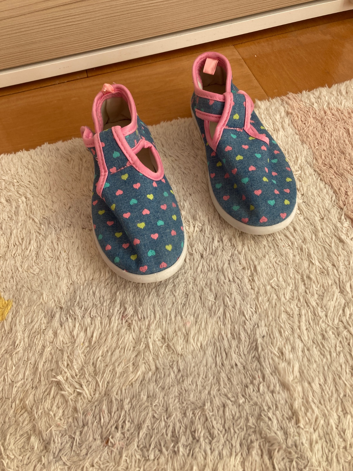 Ponukam na predaj platené topánočky. Podľa mňa vhodne aj ako papuce. Pekná potlac srdiečok. Nenosené. Na podrážke velkost 29, ale podľa mňa sú skôr 28, vid VD je na foto.
