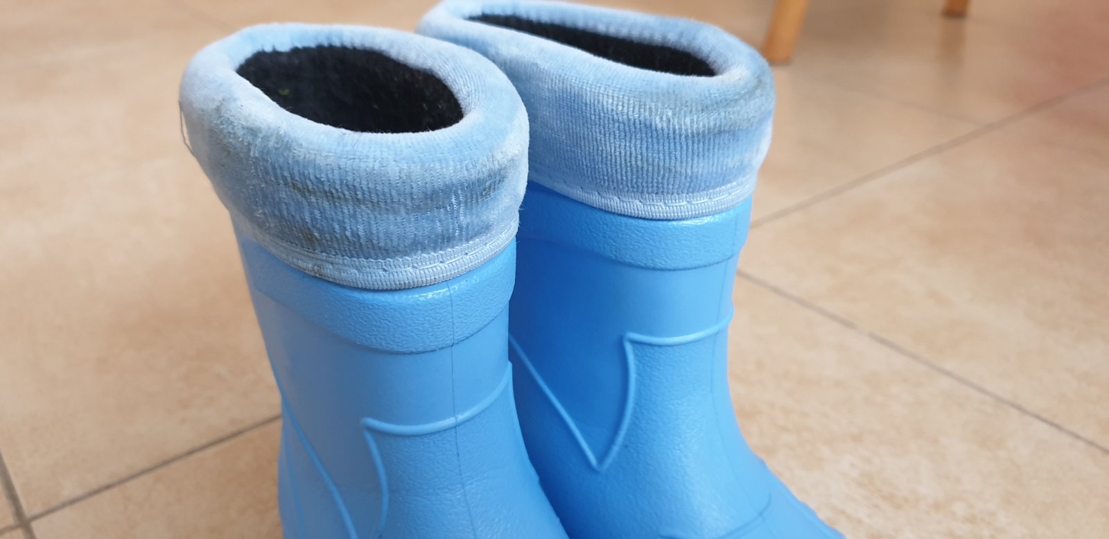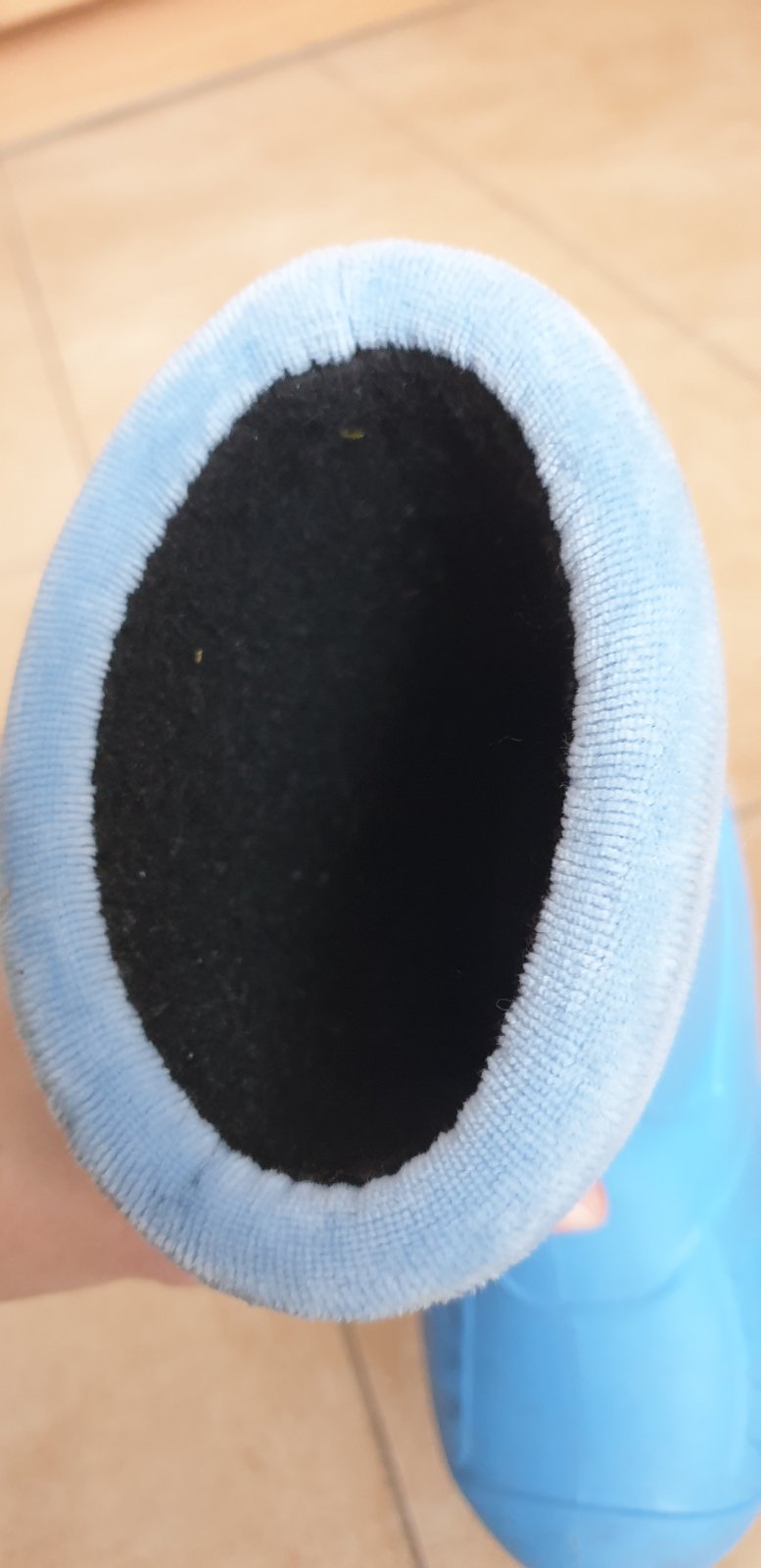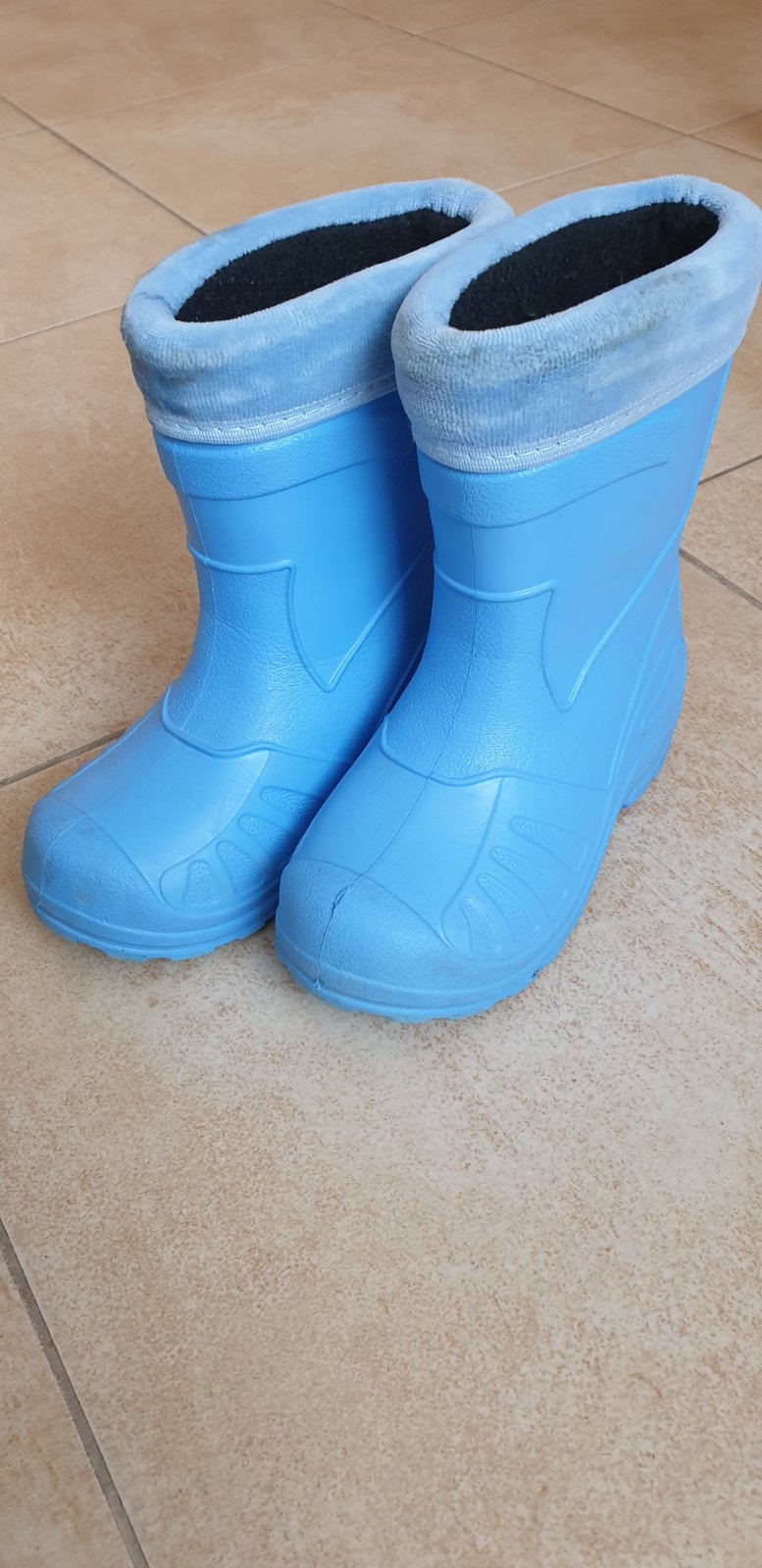 Gumaciky po synovi, nosene asi tyzden na chate. Maju zateplene vnutro, ktore sa da vybrat, vnutorma dlzka 15cm. Utrpeli niekolko flakov od travy, inak su v bezchybnom stave, nikde nepremokaju. Nie je to klasicka guma, je to nejaky iny makky material.