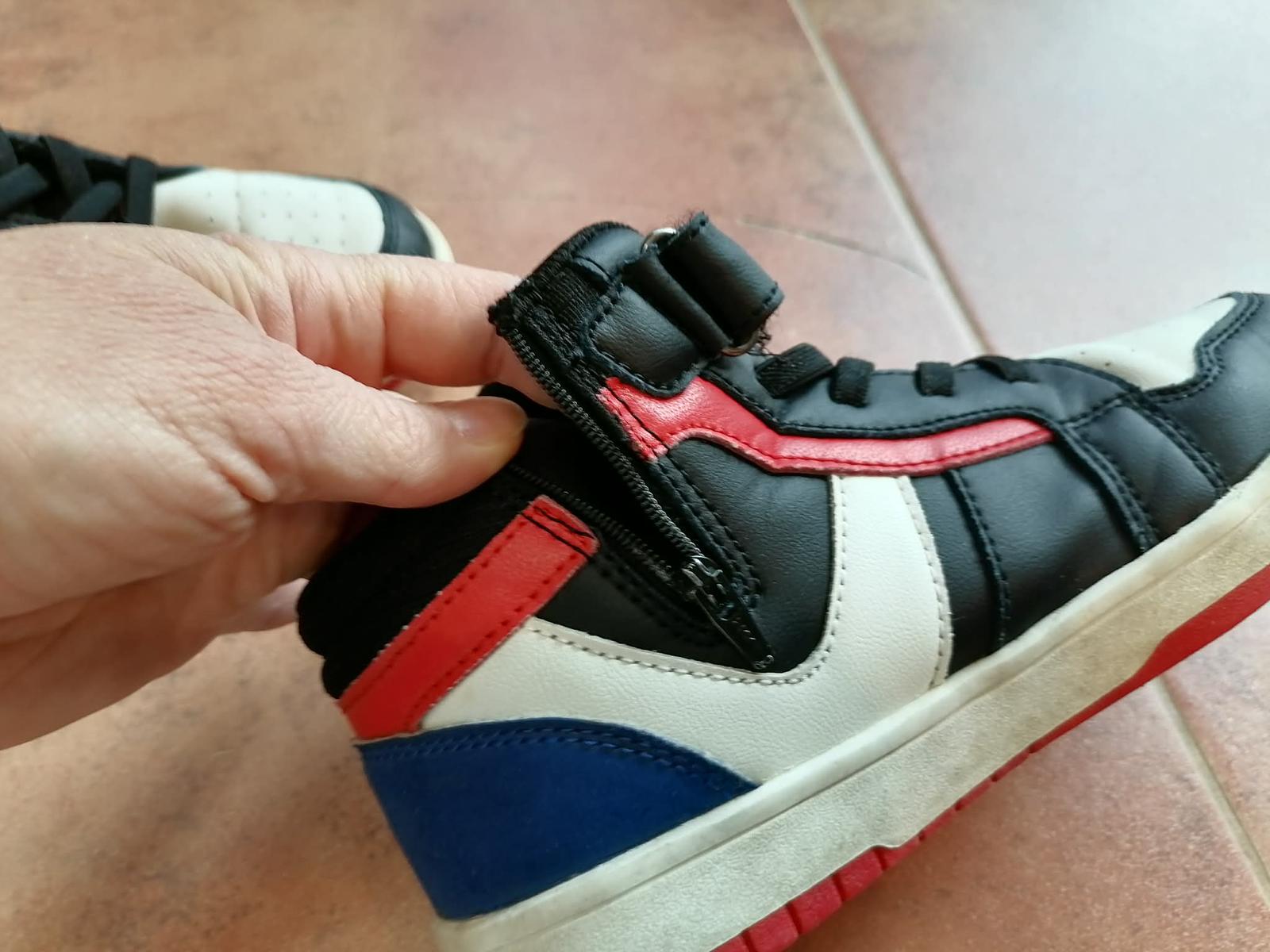 Predám zachovalé topánky, jedinou vadou je, že suché zipsy sú temer odlepené a neplnia si tak už svoju funkciu (vid foto), inak topánka sama o sebe vo veľmi dobrom stave. Ak si to niektorá mamička vie opraviť, predám za 3 Eurá. Cena bez poštovného