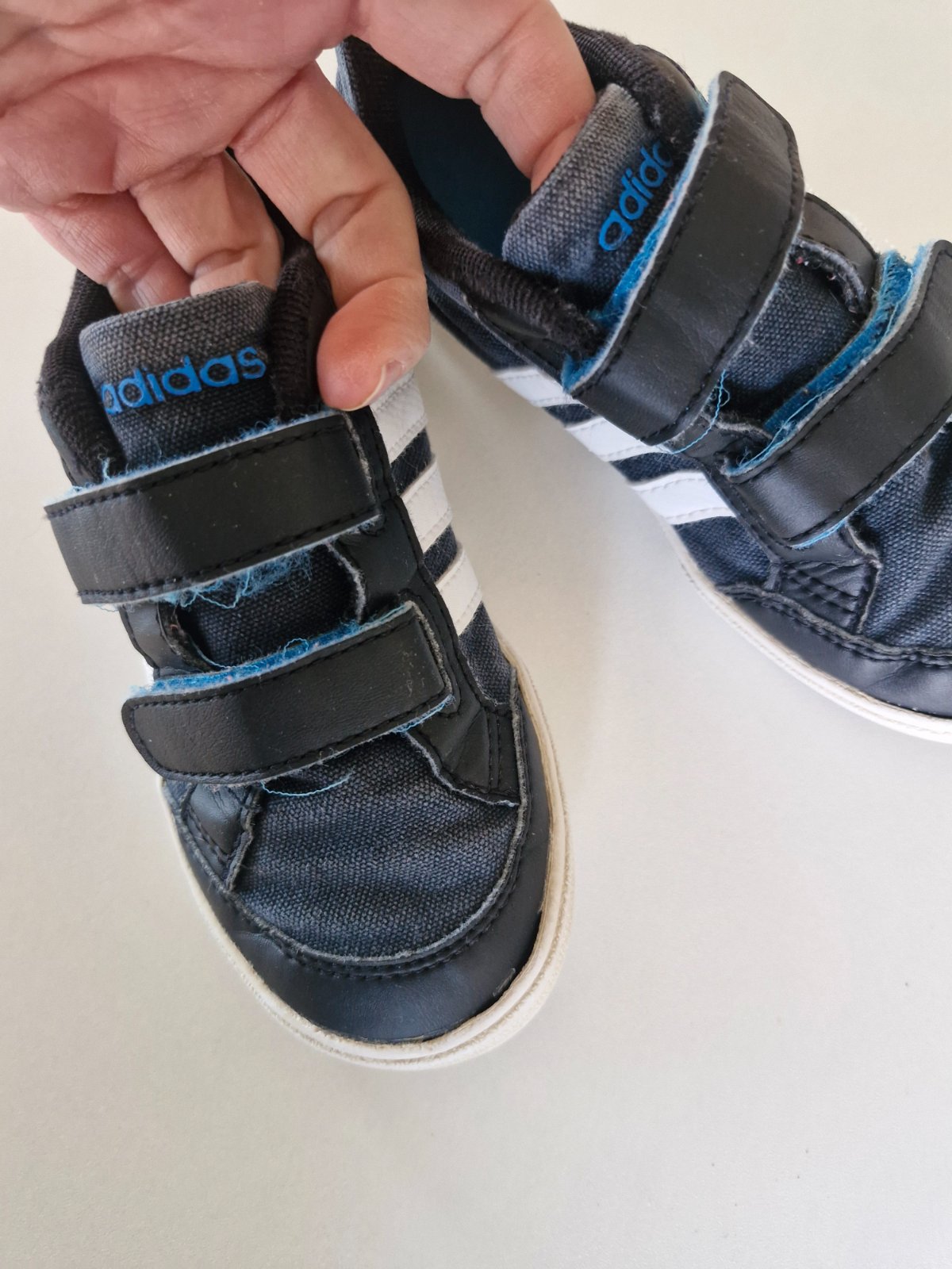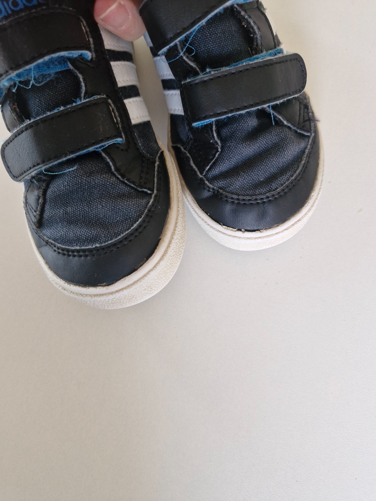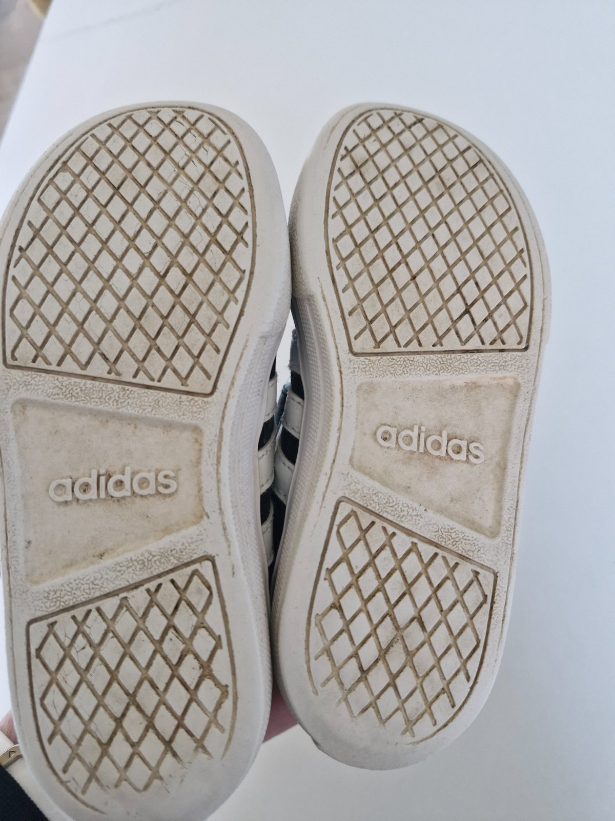 80.Adidas tenisky na suchy zips,znamky nosenia no paradu este spravia,super na ihrisko, suchy zips pekne drzi,velkost 27,vnutorna dlzka je 17-17,5cm,komplet s krabicou