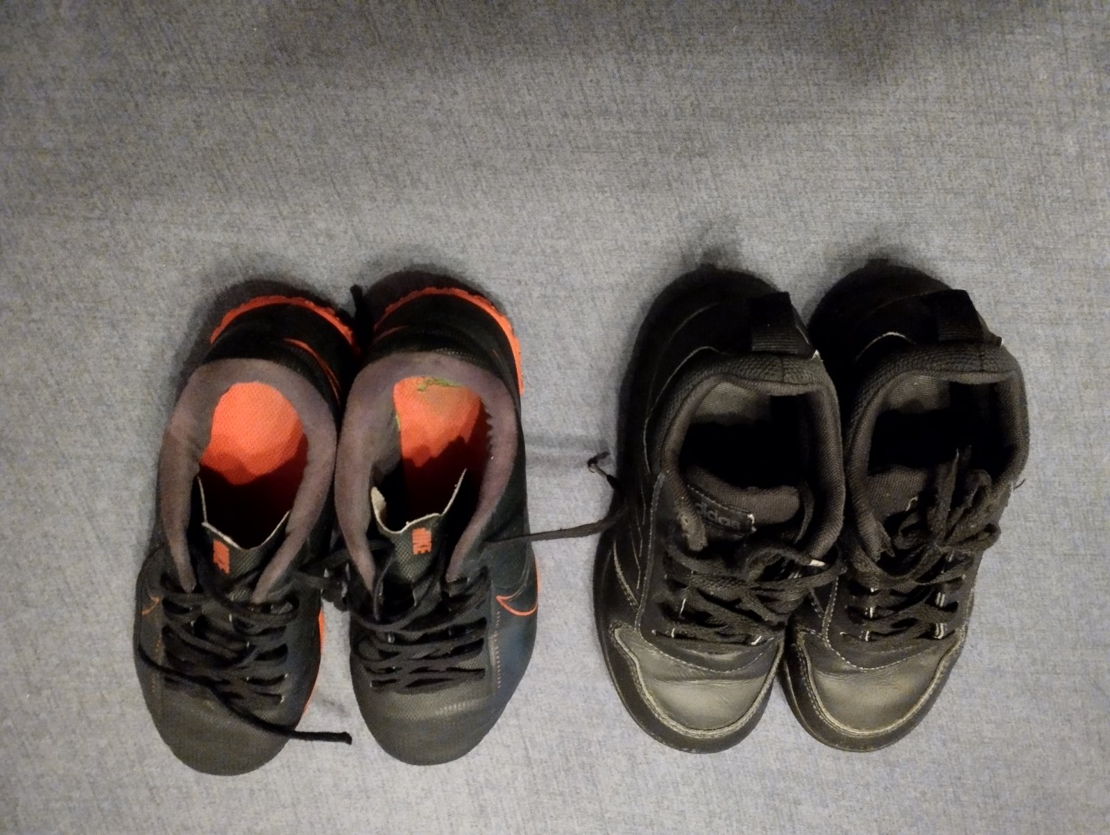 1.cierne tenisky Zn. Adidas, vpredu trochu obite na pravej tenisky, veľ. 31,5, cena 2e