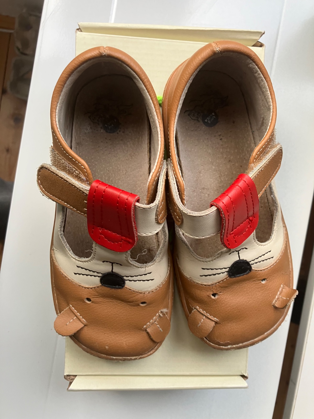 Posuniem kozene Camperi, barefoot, nosene jednu sezonu (jar + jesen). VD je 20cm. Stav ako na foto, spicky osuchane (nenosil na odrazadlo, proste sa to beznym nosenim takto zosuchlo), podrazky su v...