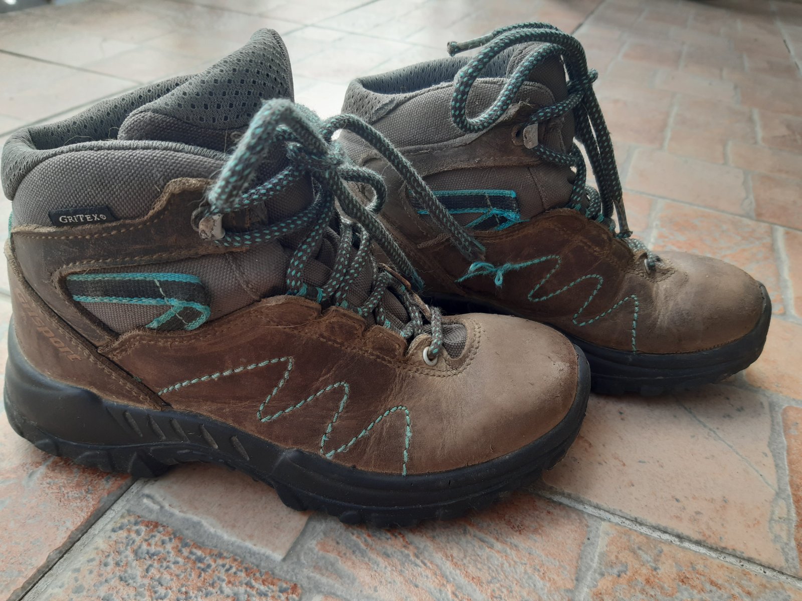 Turisticke topanky kotnikove. Zapinanie na suchy zips. Nosili sme aj v zime s termo vlozkou