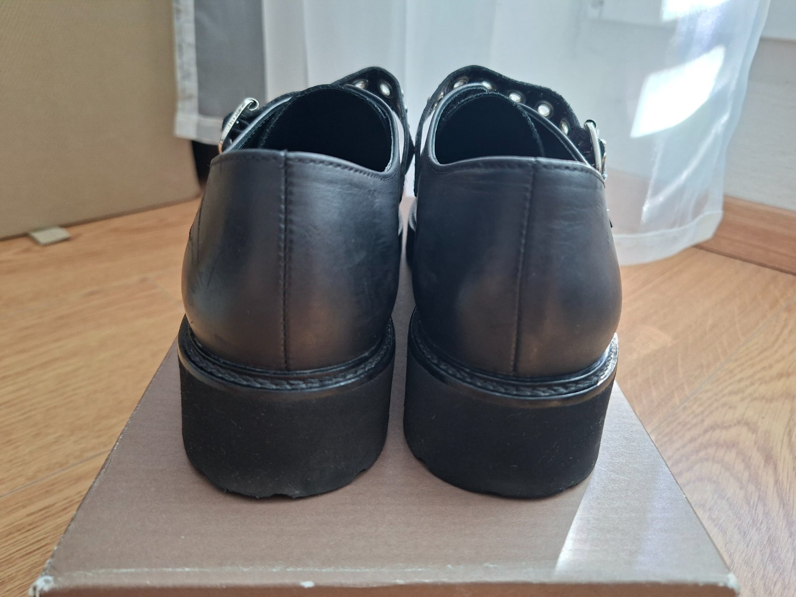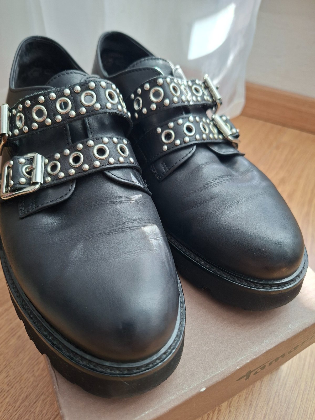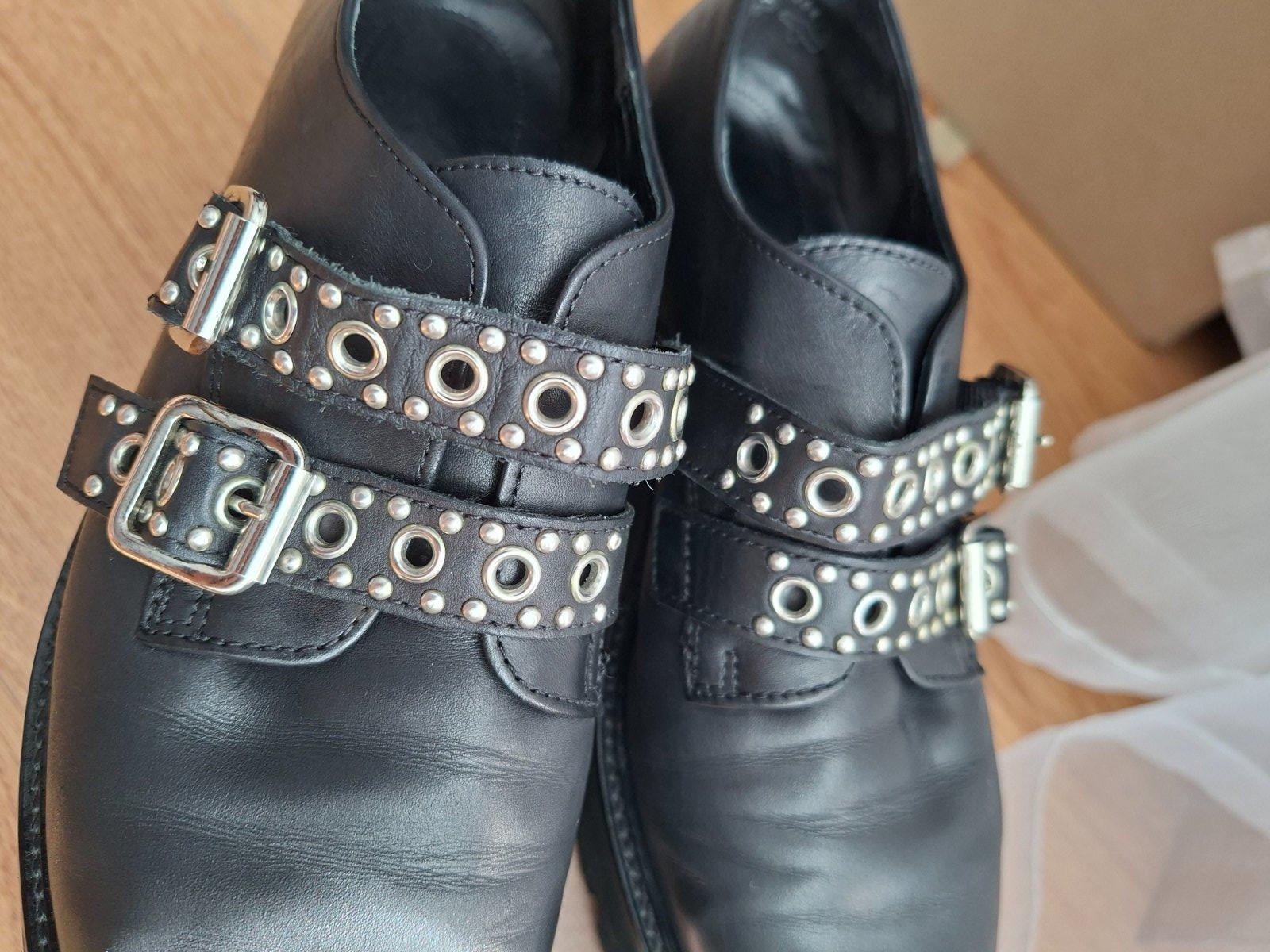 Celokožene topanky, veľkosť 37 1/2. Pracky su nastaviteľné.