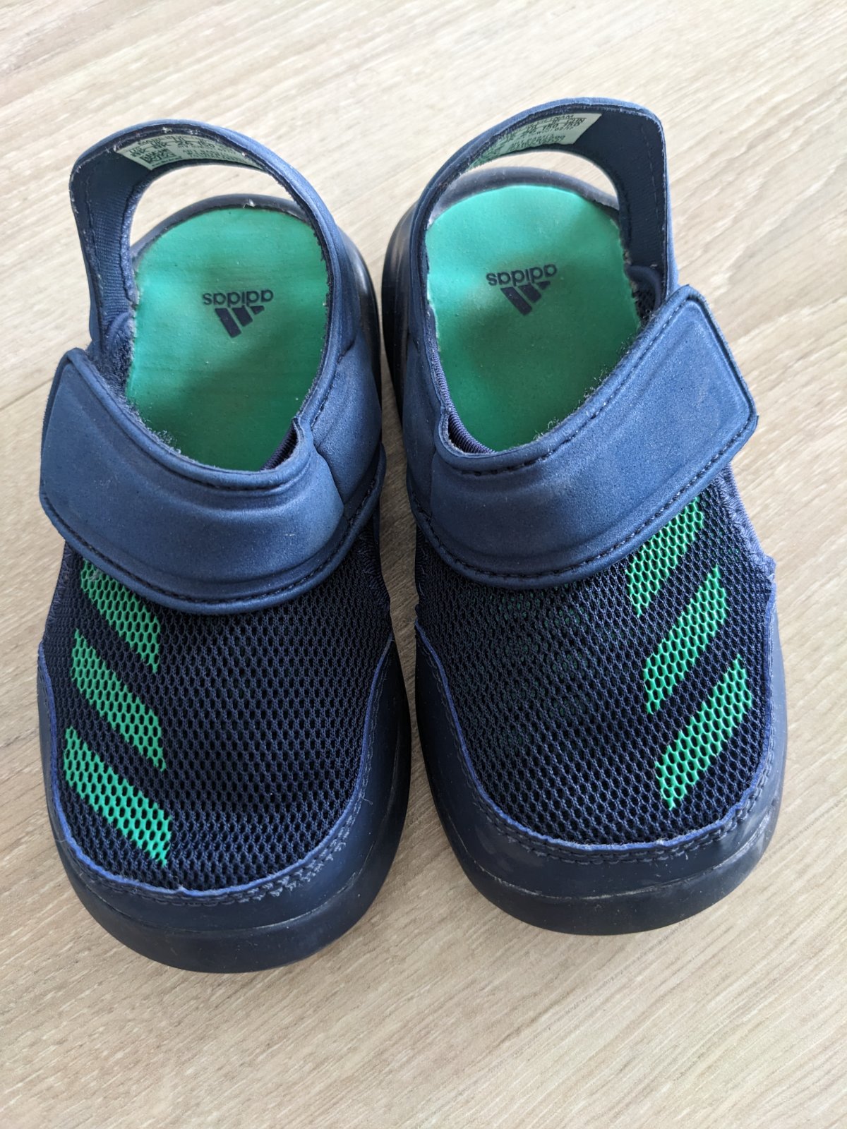 Posúvam úplne nové sandálky Adidas. Kupovala som v zime v akcii a nám by stačili o číslo menšie 😕.