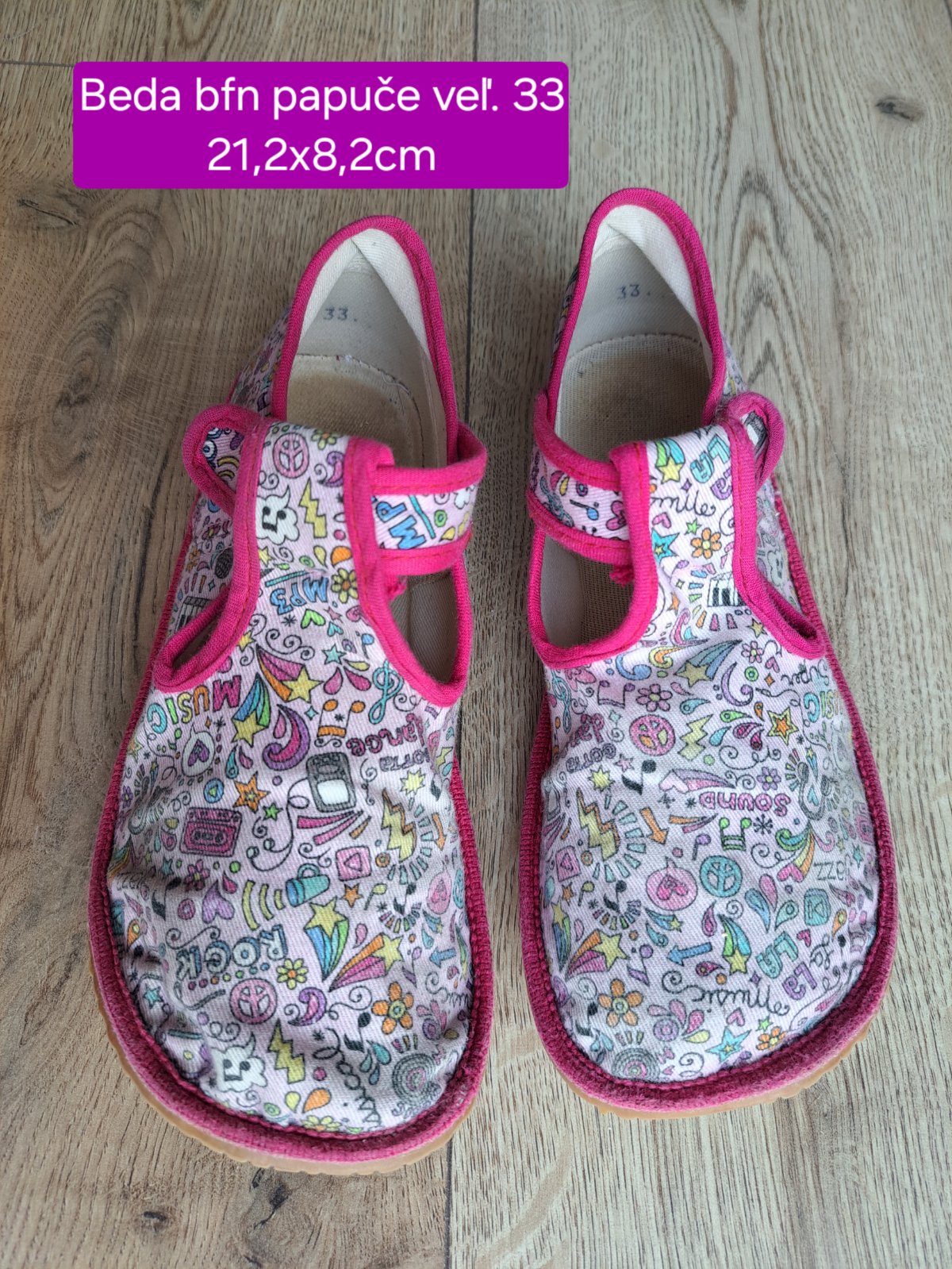 Predám dievčenské papučky Beda, vzor Ružový koník, veľkosť 33, rozmery 21,2 cm. Cena 12,00 + poštovné.
